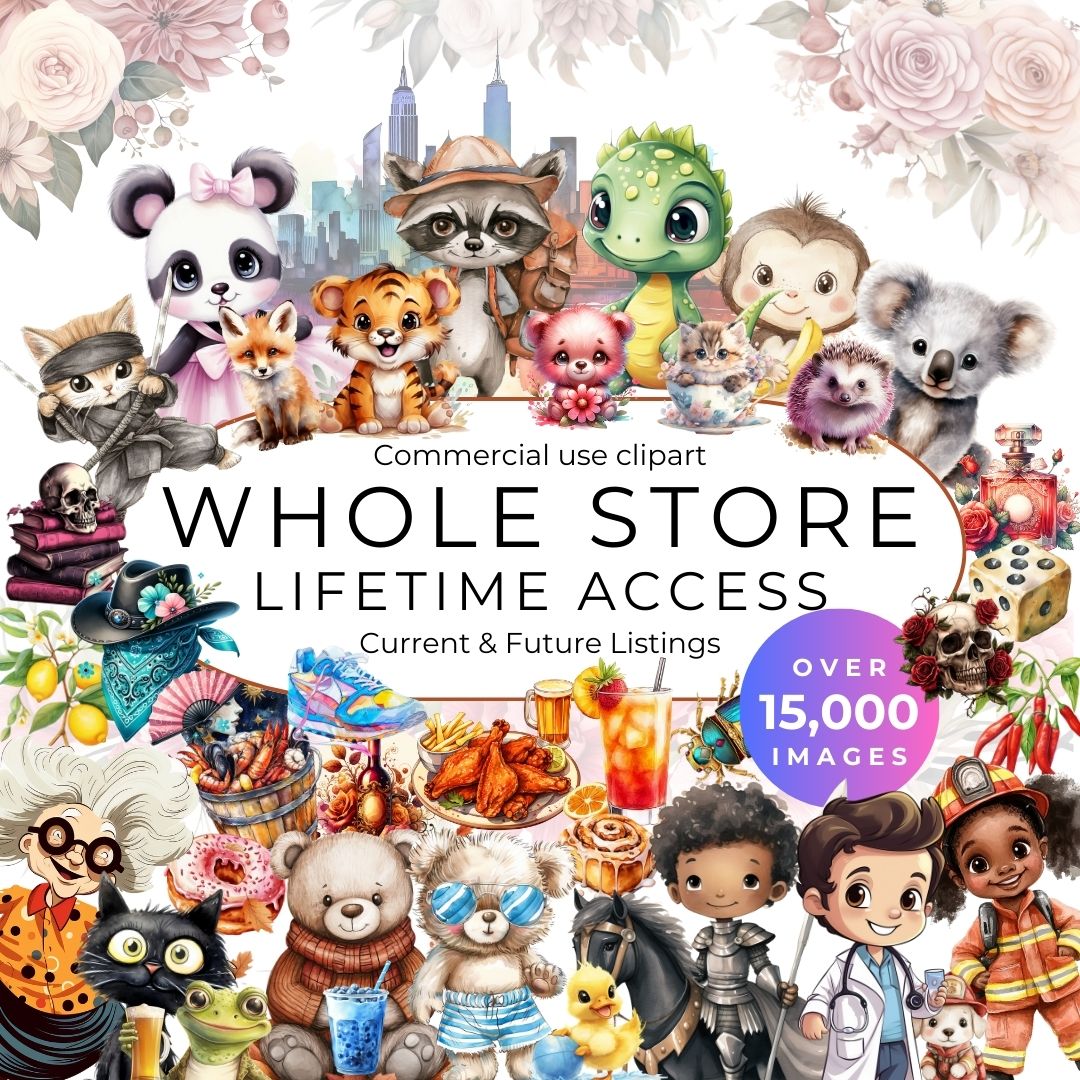 Whole Store Lifetime Clipart & Tumbler Wrap Pass – 15,000+ PNGs | Commercial Use