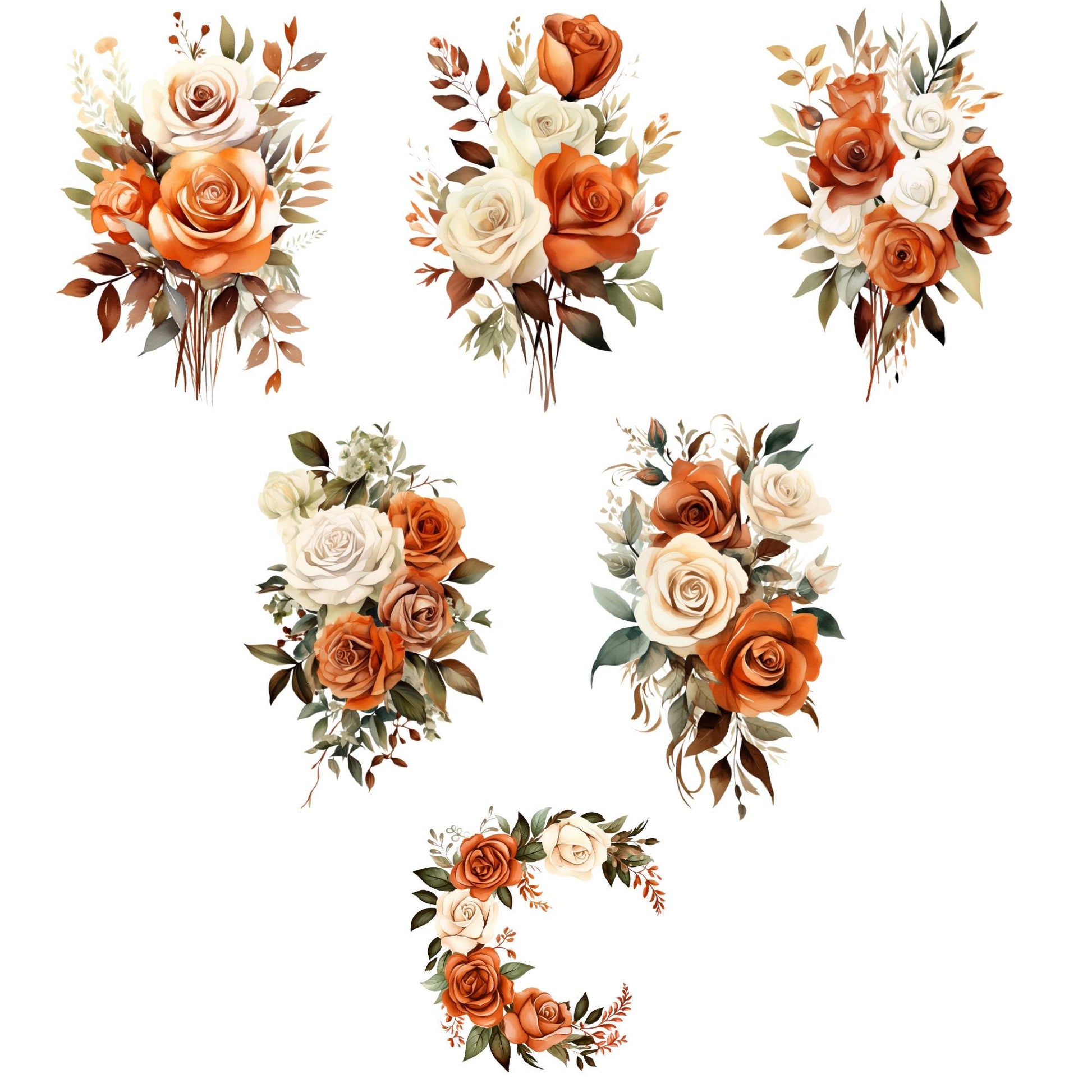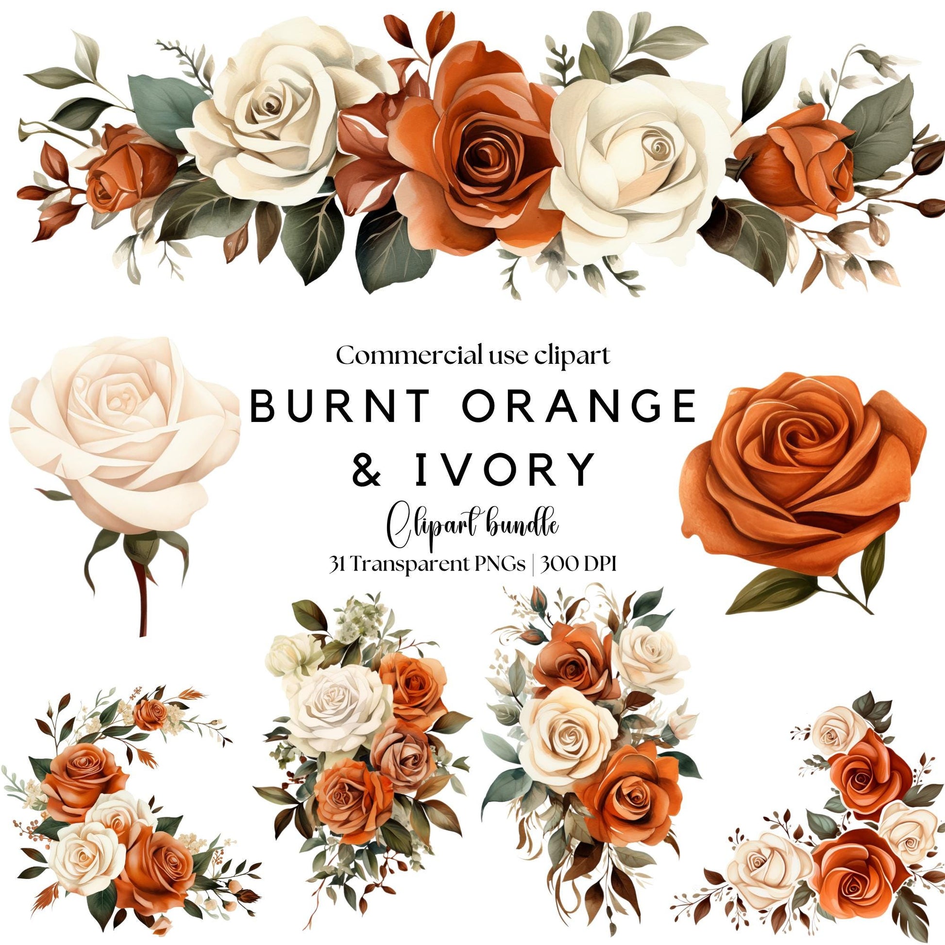 Add a touch of autumn elegance to your creative projects with this Burnt Orange and Ivory Clipart collection! Featuring beautifully crafted florals, this pack is perfect for adding a boho vibe to your fall-themed designs. With rich burnt orange, terracotta tones, and contrasting white accents, these florals are ideal for weddings, invitations, stationery, and so much more.