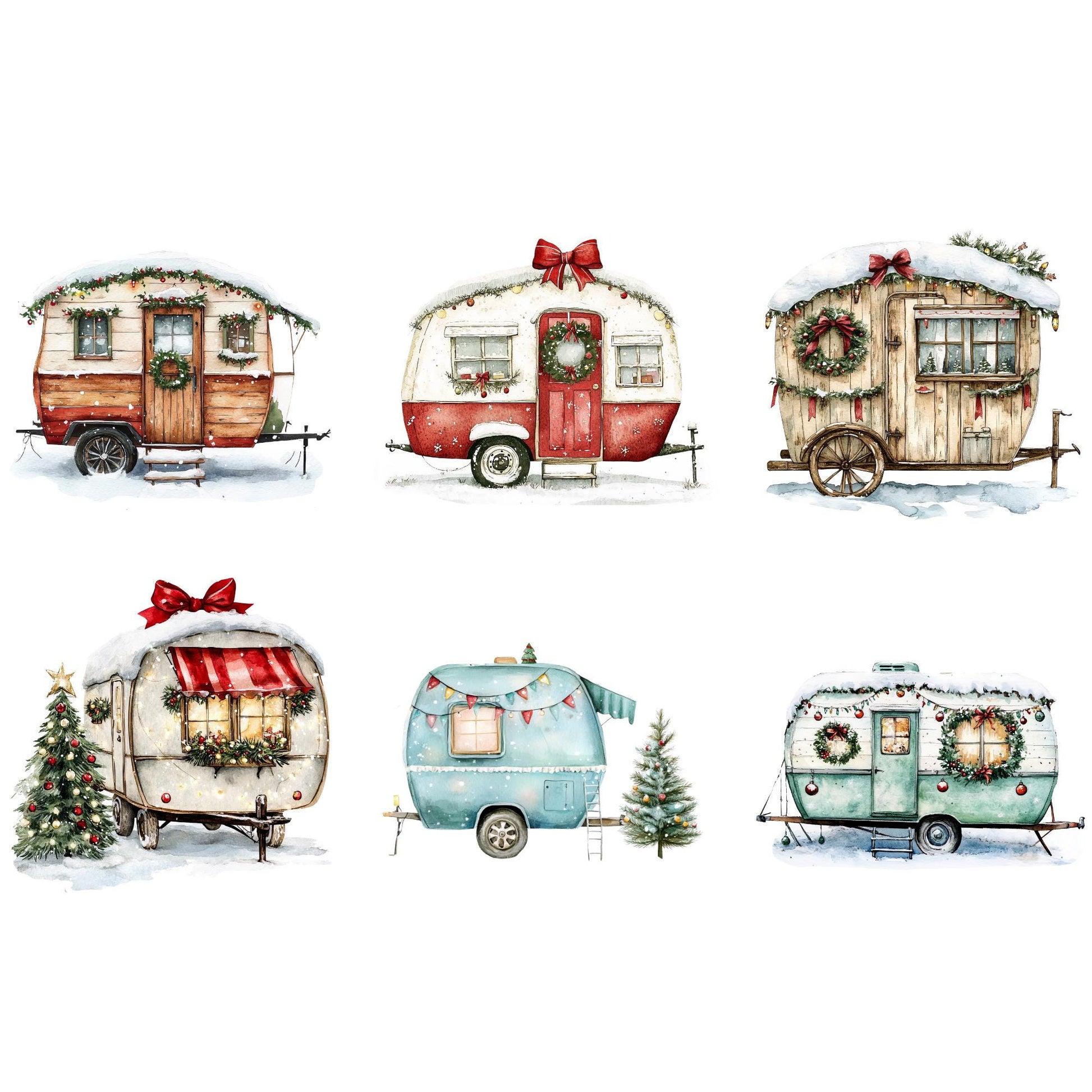 Watercolor Clipart, Christmas Caravan, Christmas Clipart, Camping Prints, Watercolor Caravan, Digital Download, Sublimation Designs, Caravan Clothing, Camper Van Clipart, Retro Camping Png, Svg Camper Van Rv, Digital Paper Craft, Merry Christmas Png