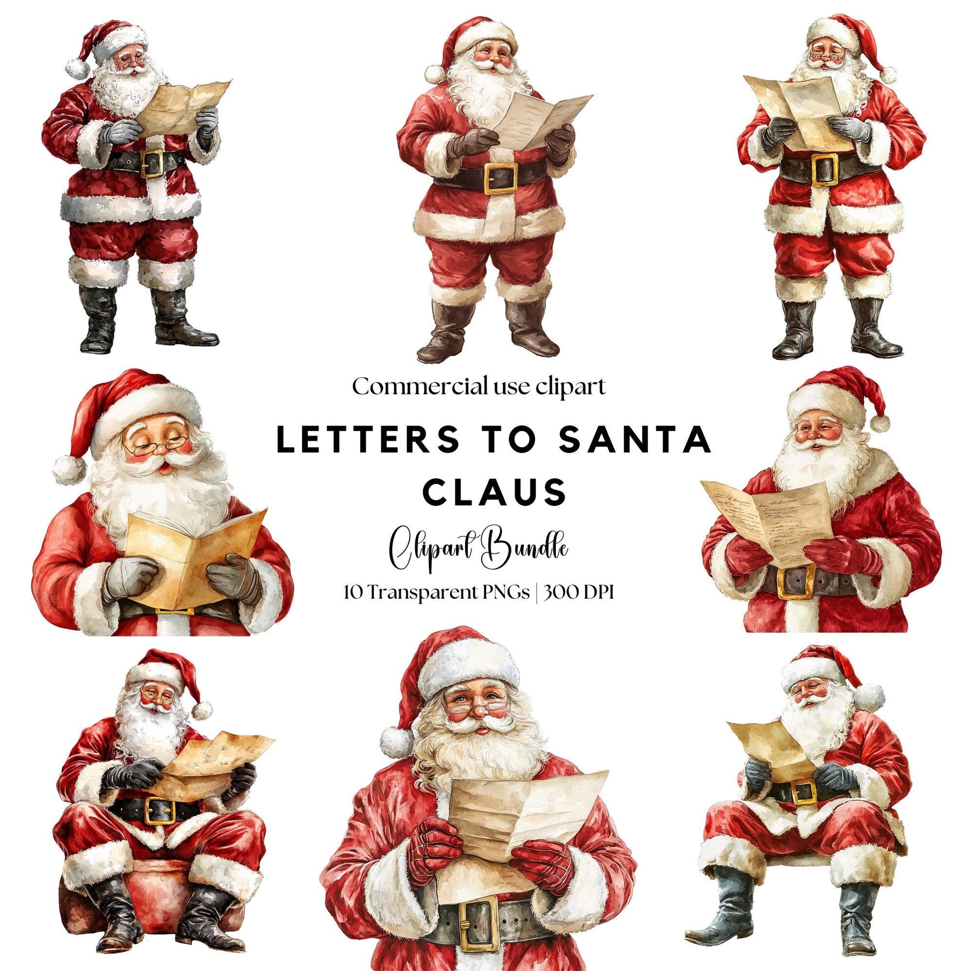 Get ready to add some holiday magic to your designs with this Letters to Santa Claus Clipart pack! Featuring beautifully crafted watercolor elements, these transparent Santa Claus PNGs are perfect for creating personalized Christmas Letters, greeting cards, invitations, and more. Whether you're designing for stationery, digital prints, or sublimation, this set brings the festive charm of the season right to your projects!