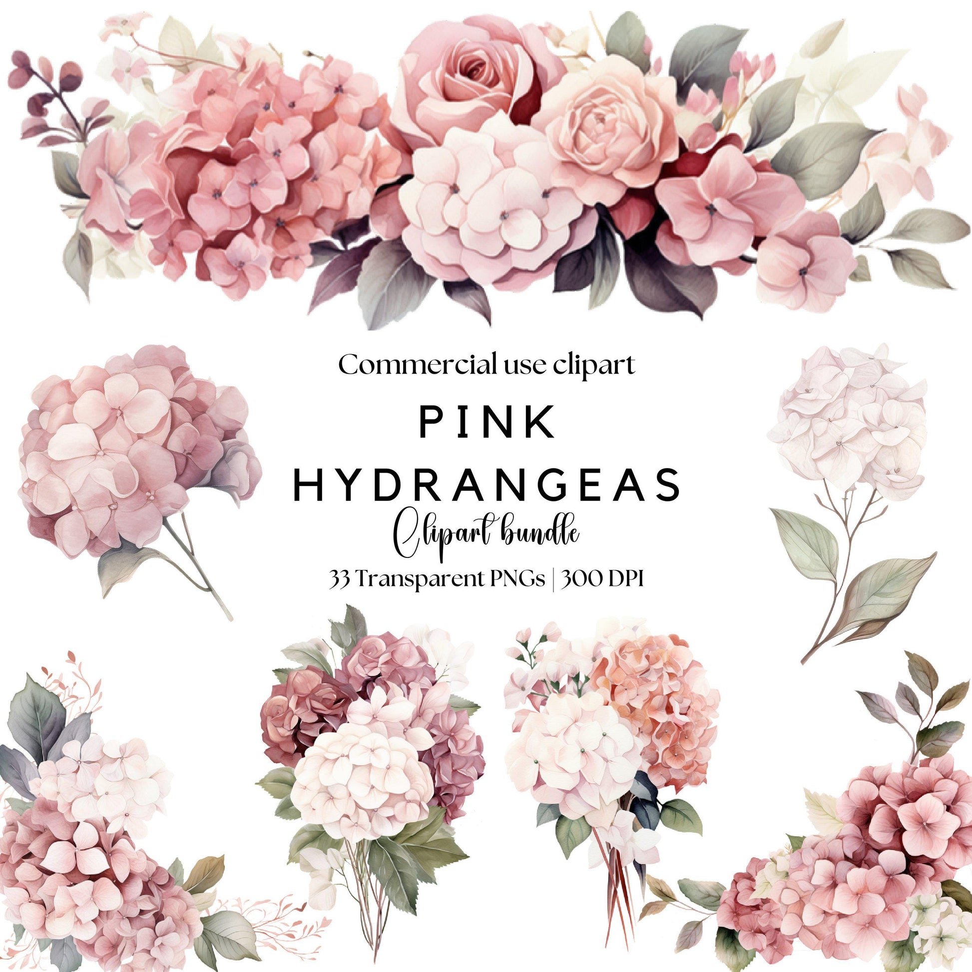 Watercolor Dusty Pink Hydrangea and Rose Floral Clipart