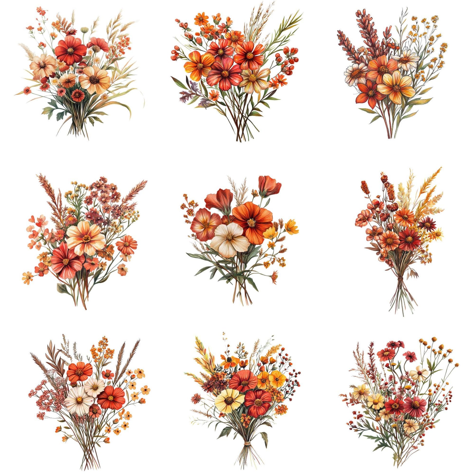 Capture the essence of autumn with our exquisite Fall Wildflowers Clipart collection. This set features beautifully crafted watercolor flowers that evoke the warm, earthy tones of the season. Perfect for creating stunning wedding invitations, seasonal greeting cards, DIY projects, or any creative endeavor that requires a touch of autumn magic.