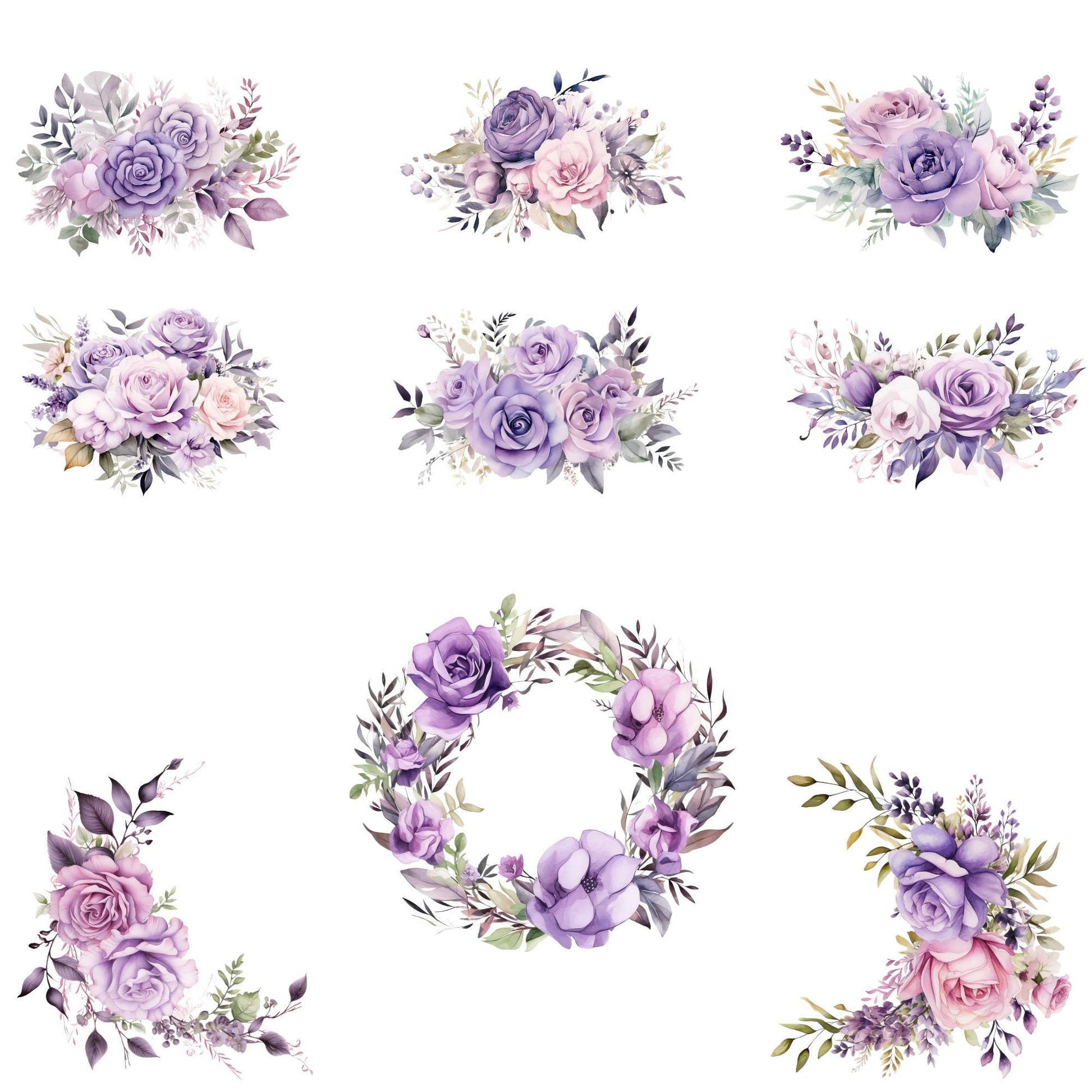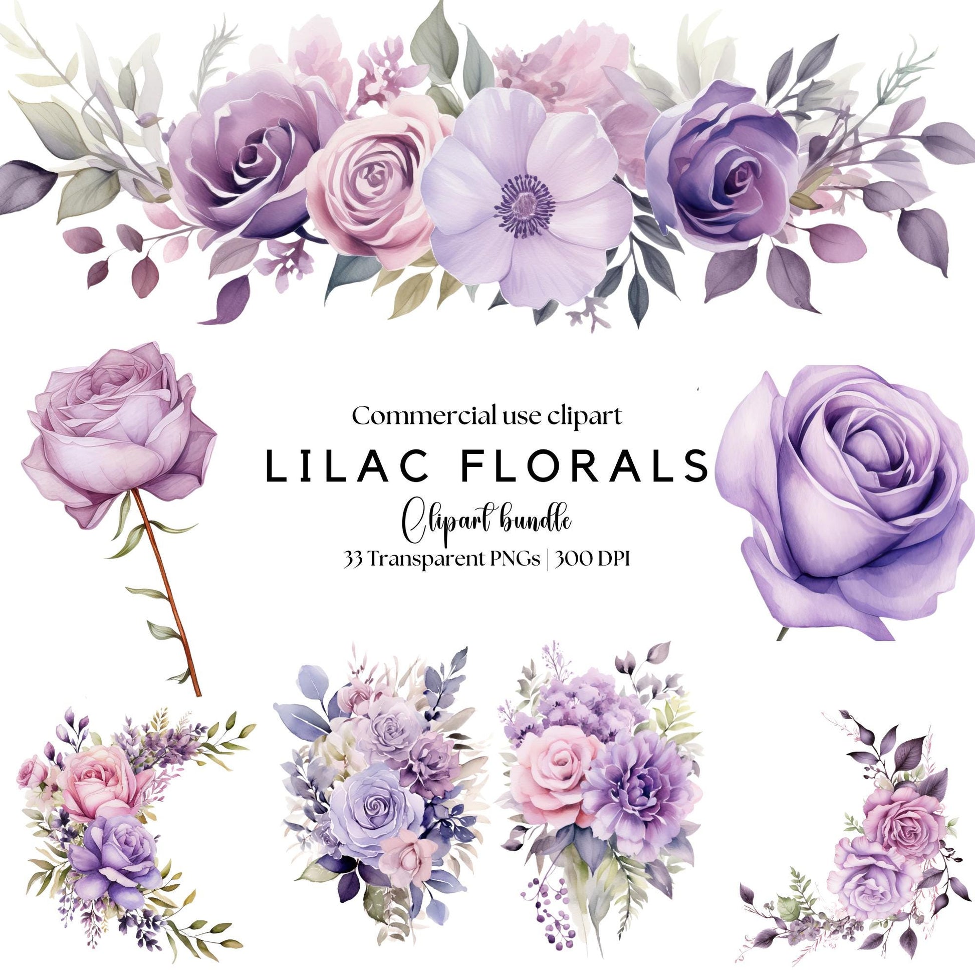 Watercolor Lilac Floral Clipart