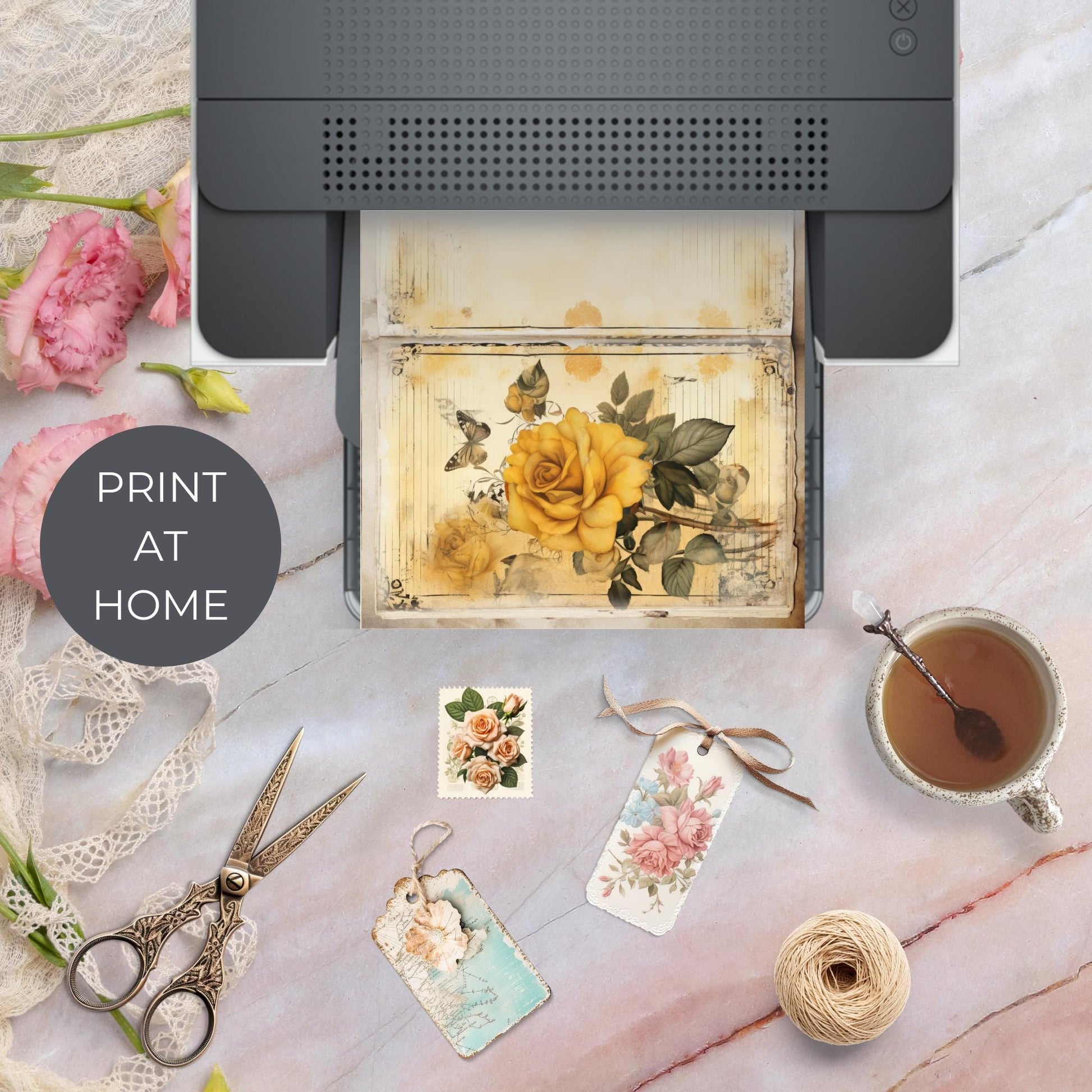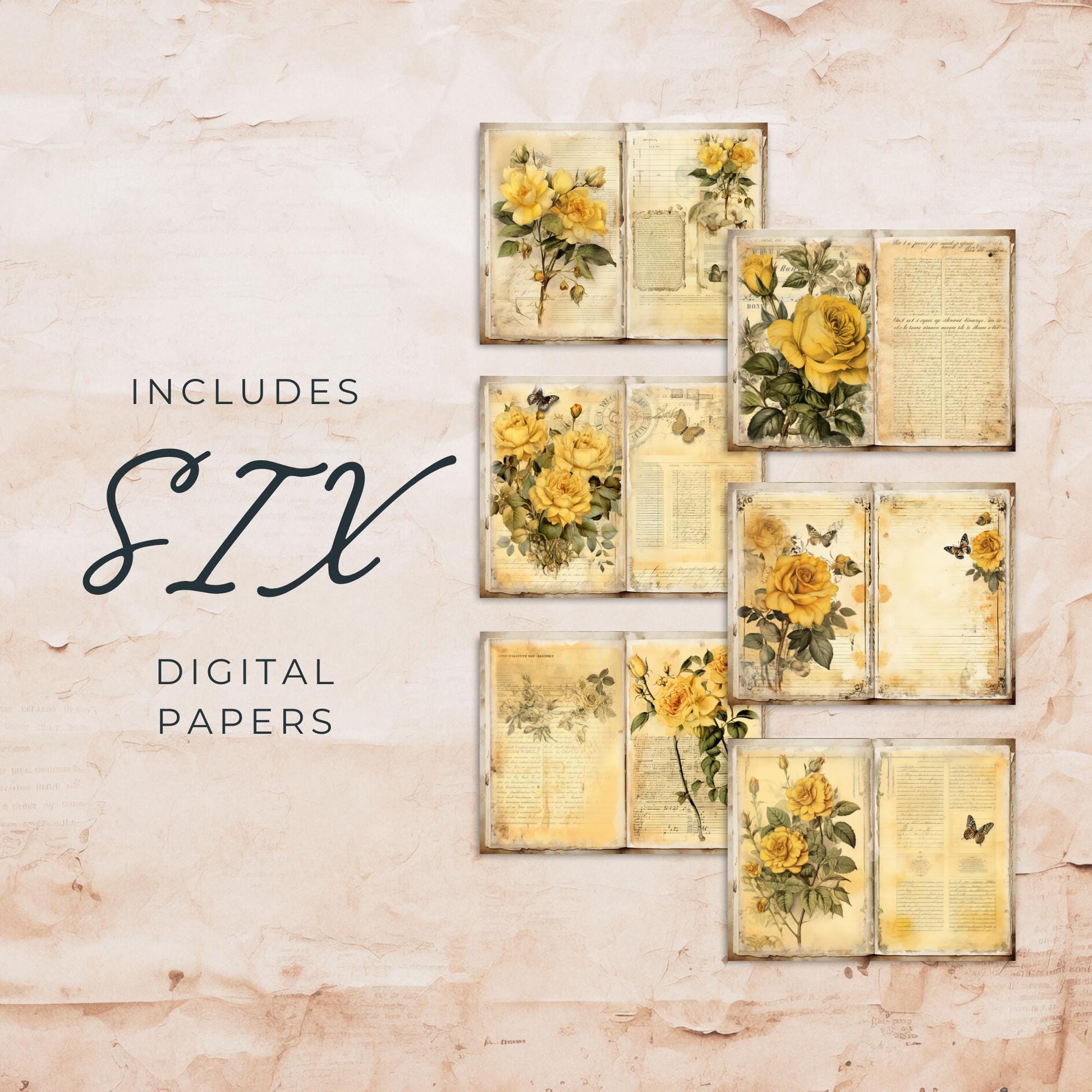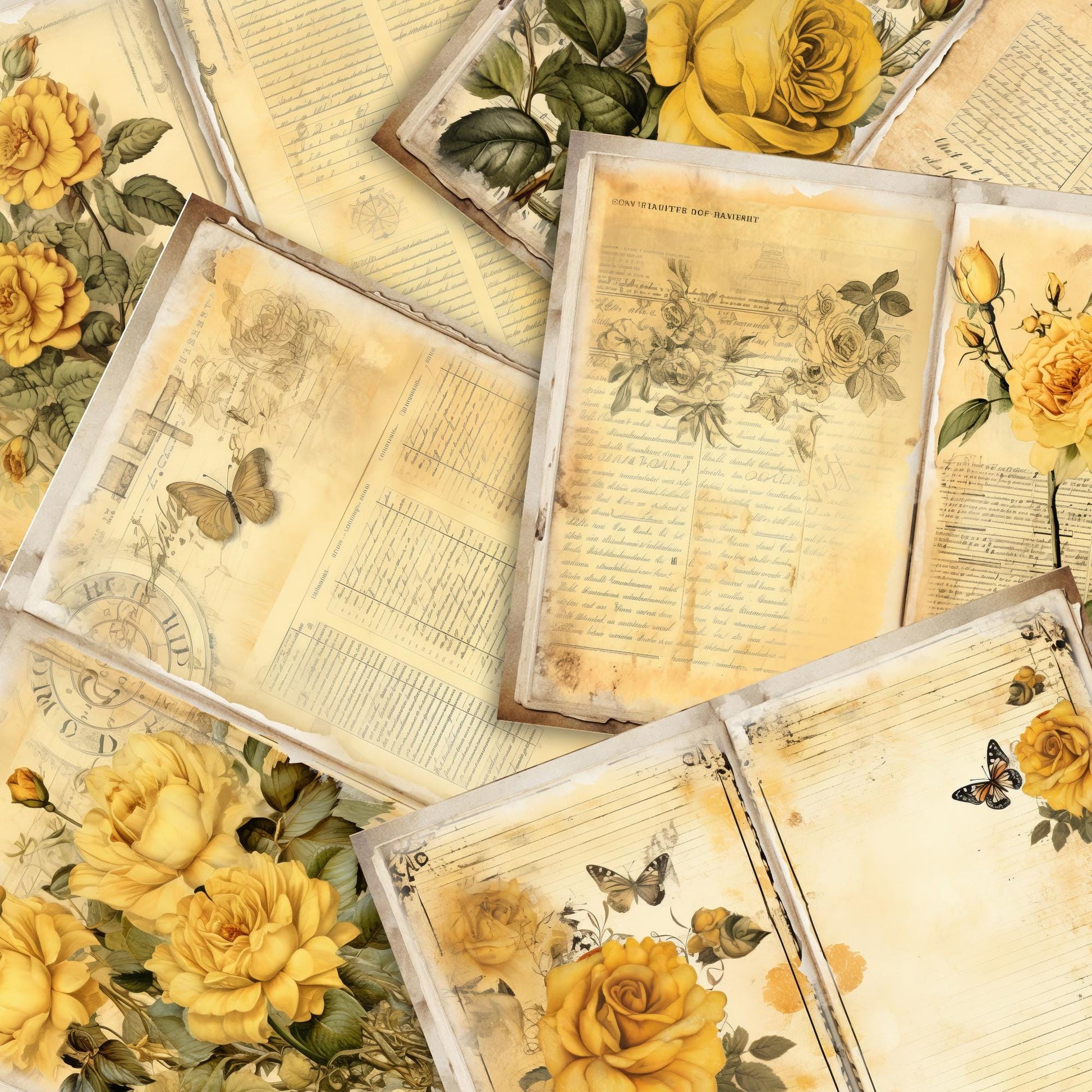 Transform your creative projects with our Yellow Rose Junk Journal Kit, featuring beautifully designed vintage-inspired junk journal pages. This printable kit is perfect for journal enthusiasts, scrapbookers, and lovers of all things shabby chic. Each page is adorned with charming yellow rose illustrations, capturing the essence of a floral junk journal aesthetic.