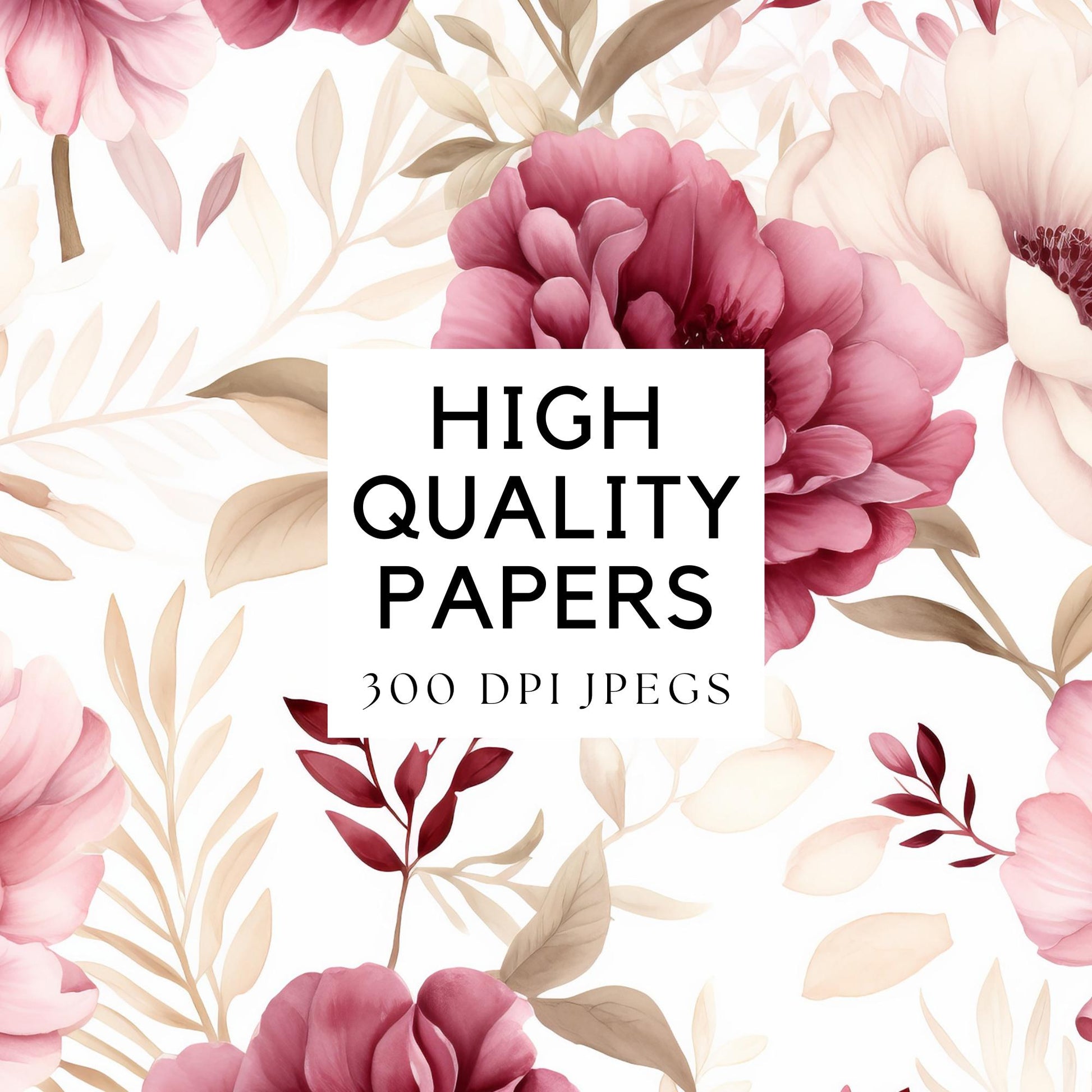 Bienvenido a nuestro Pack de Papeles Digitales Florales Borgoña y Ruborizado: una impresionante colección que combina a la perfección la riqueza del burdeos con la suave elegancia de los tonos ruborizados. Este set es una joya escondida para quienes buscan papeles florales versátiles con un toque de sofisticación. Sumérgete en el encantador mundo de las flores de acuarela, donde las flores burdeos se entrelazan con pétalos en tonos ruborizados para crear cautivadores ramos.