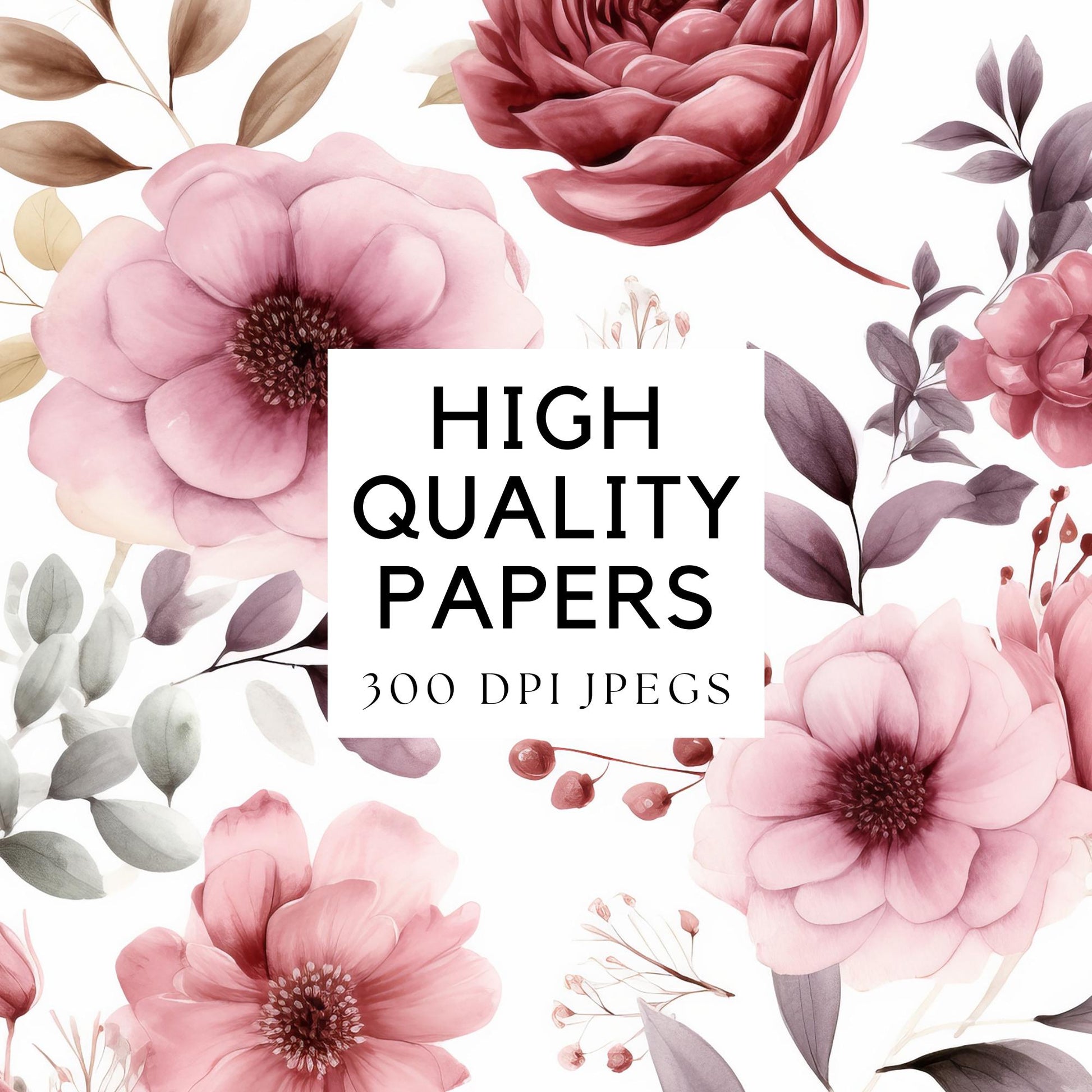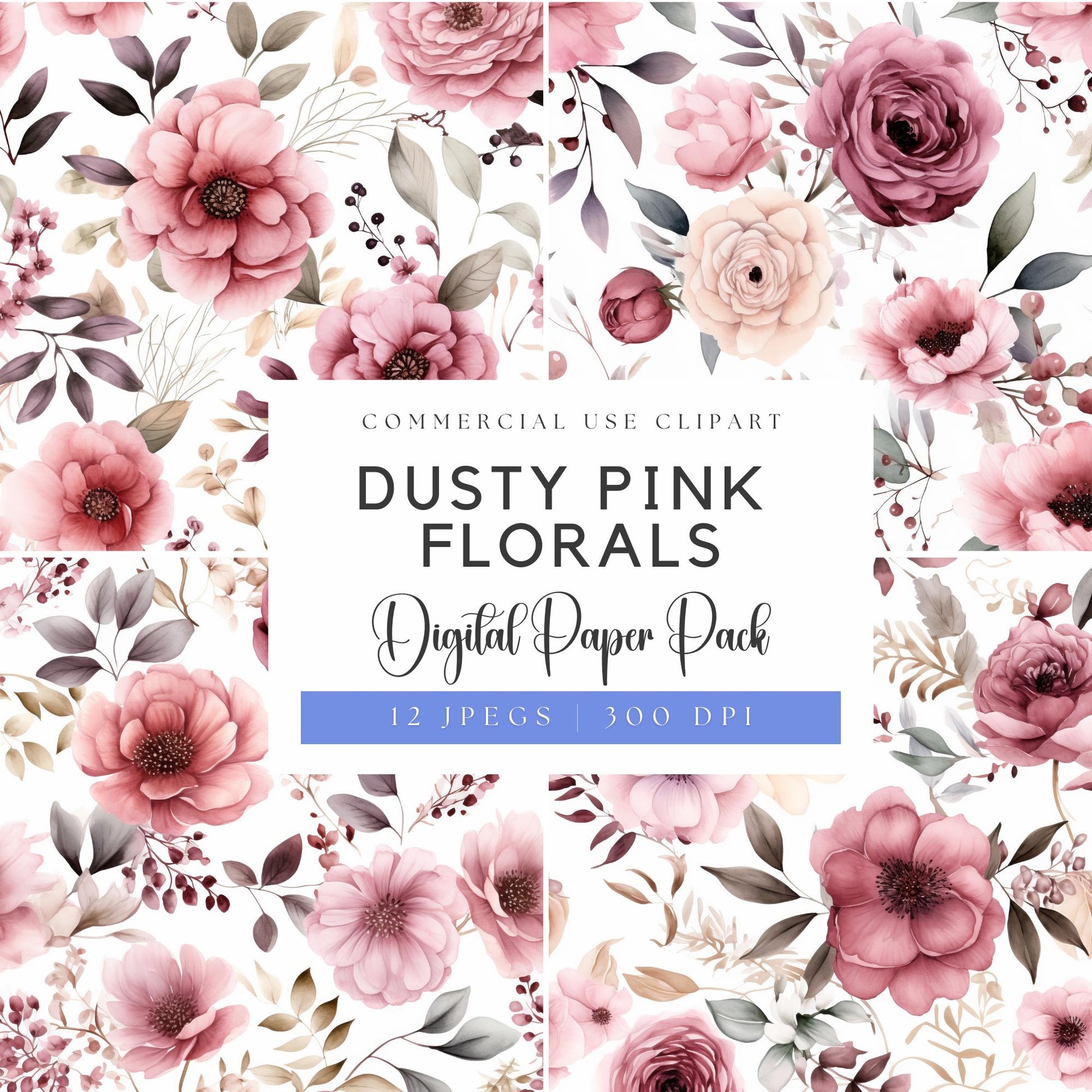 Esta impresionante colección de papeles digitales florales en rosa empolvado presenta rosas de acuarela suaves y delicadas y otras flores en rosa empolvado, perfectas para tu próximo proyecto creativo. Ideales para invitaciones de boda, scrapbooking o cualquier diseño de clipart para bodas, estos cliparts florales rosas añaden un toque romántico a cualquier creación. Con un toque sutil y atemporal, estas flores de acuarela complementarán diversos estilos, desde modernos hasta vintage.