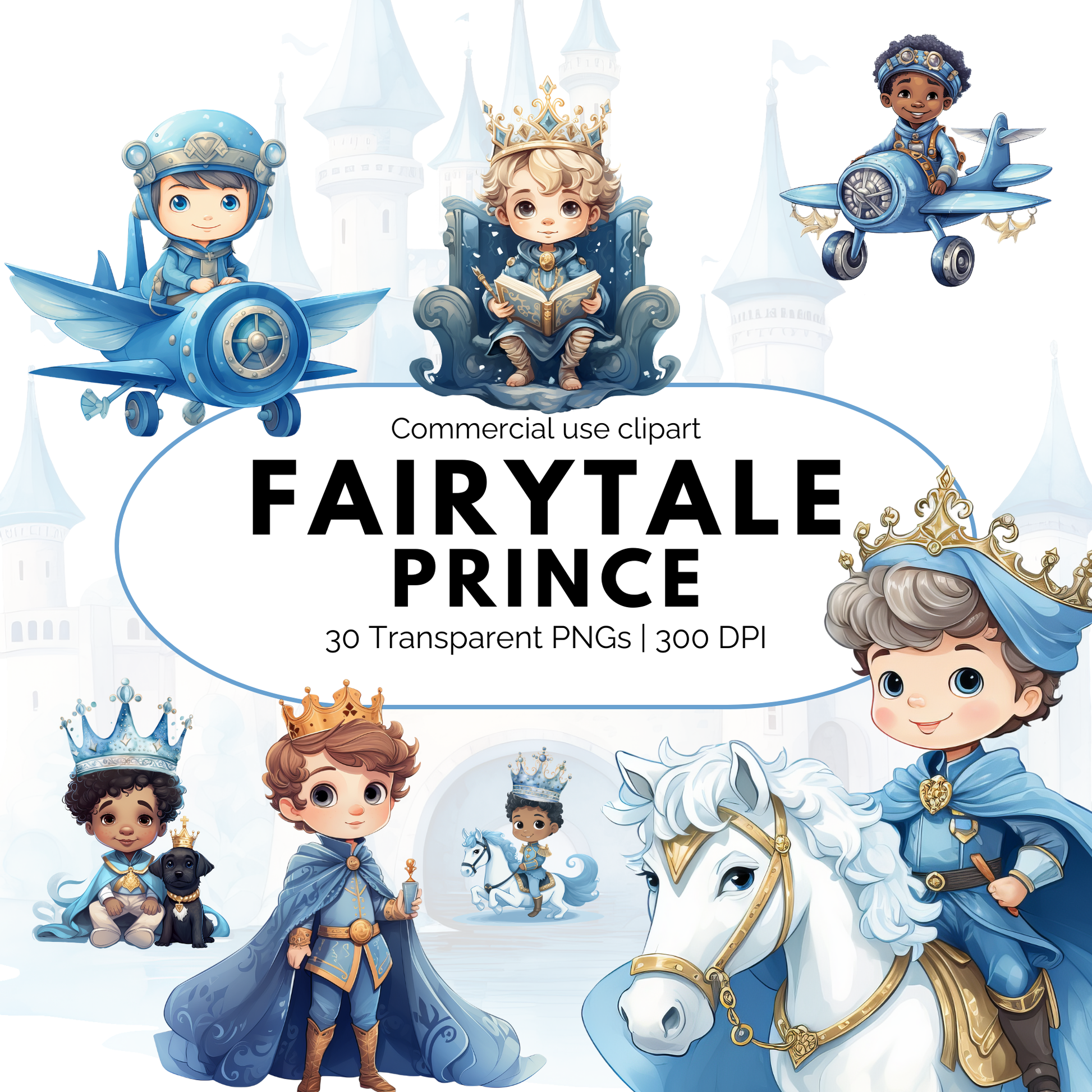 ¡Descubre el encanto de nuestro Pack de Cliparts Príncipe de Cuento de Hadas! 🎨 Perfecto para añadir un toque de fantasía a tus proyectos, esta colección presenta encantadoras ilustraciones en tonos azules. Ideales para decoración infantil, regalos e invitaciones de cumpleaños, estos diseños te transportarán a un mundo de imaginación y asombro. ✨ ¡Deja volar tu creatividad con nuestra colección Príncipe de Acuarela hoy mismo!