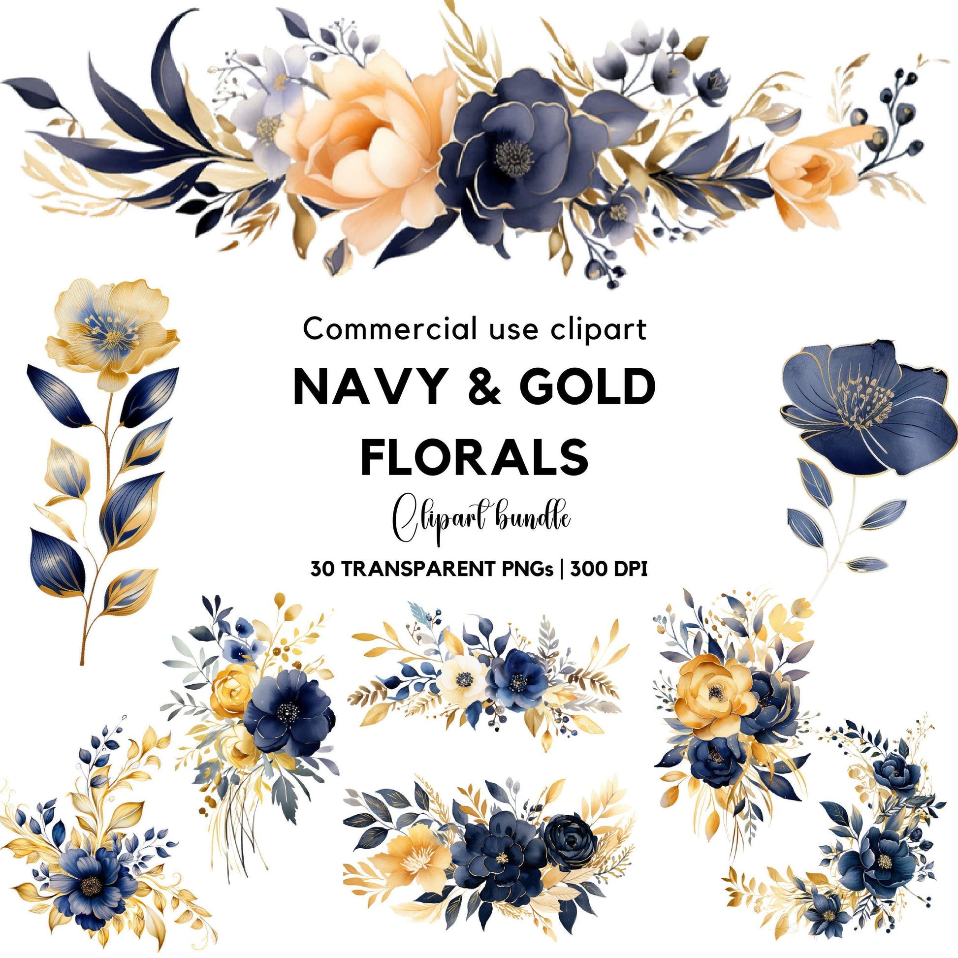 ¡Déjate llevar por la elegancia atemporal con nuestra colección de cliparts florales en azul marino y dorado! Cada clipart de acuarela luce delicadas flores azul marino adornadas con lujosos detalles dorados, perfectos para añadir un toque de sofisticación a tus diseños. Ideales para invitaciones de boda, proyectos de inspiración vintage o cualquier proyecto creativo que busque un toque de refinamiento.