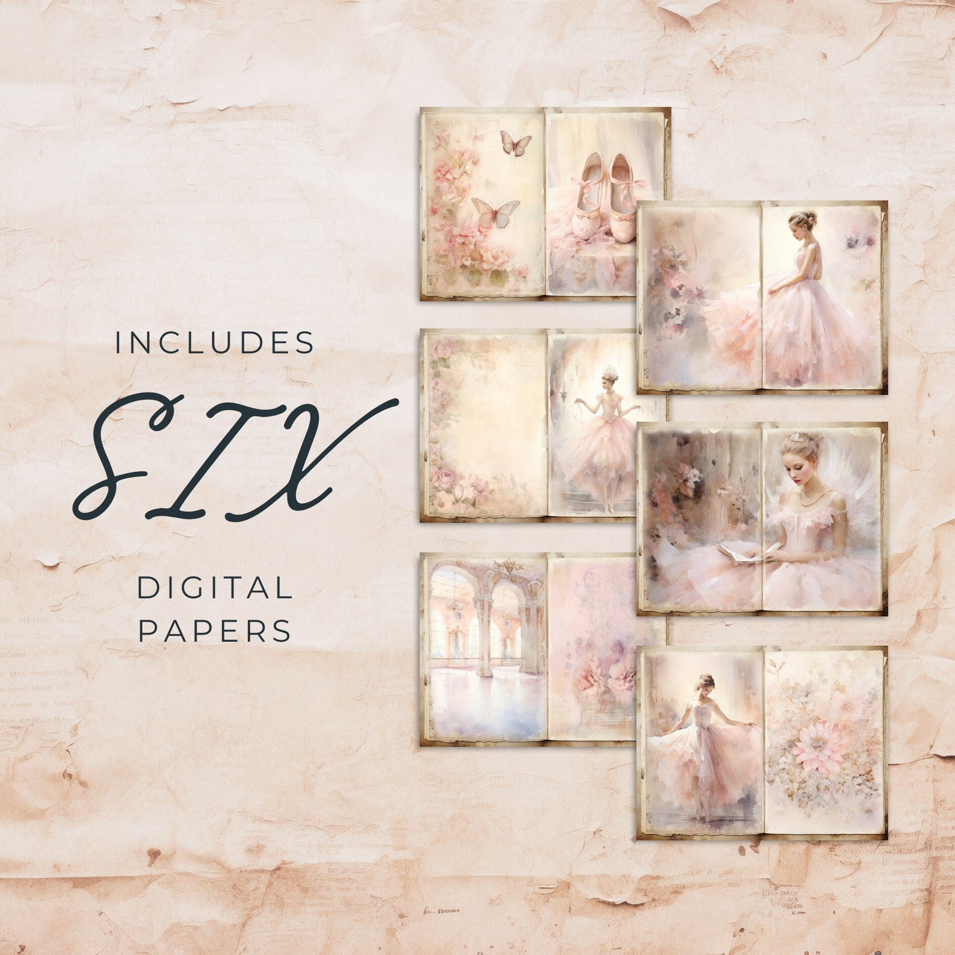 Captura la elegancia del ballet y el encanto del estilo shabby chic con nuestro Pack de Páginas de Diario de Bailarina. Esta exquisita colección es perfecta para crear tu propio diario de bailarina, diario de ballet o proyectos de scrapbooking. Tanto si eres un apasionado de los diarios como si estás empezando, estas páginas de bailarina de inspiración vintage añadirán un toque de gracia y belleza a tus creaciones.