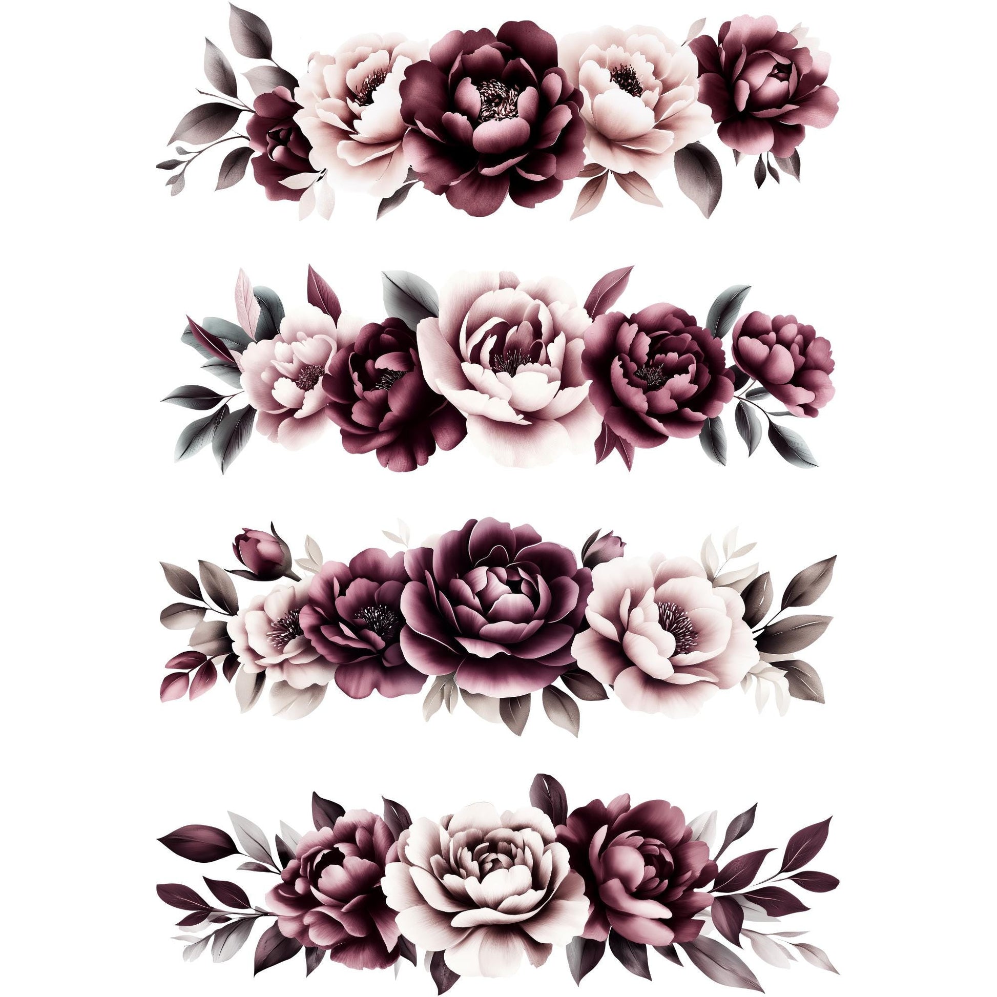 Este paquete de imágenes prediseñadas florales en tonos rubor intenso incluye una impresionante colección de flores de acuarela en tonos burdeos intensos y rubor suave. Con 20 archivos PNG transparentes, este conjunto es perfecto para crear elegantes invitaciones de boda, arreglos florales y mucho más. La combinación de tonos burdeos y rubor añade un toque sofisticado a cualquier proyecto, lo que lo convierte en la opción ideal para bodas, despedidas de soltera y otras ocasiones especiales.