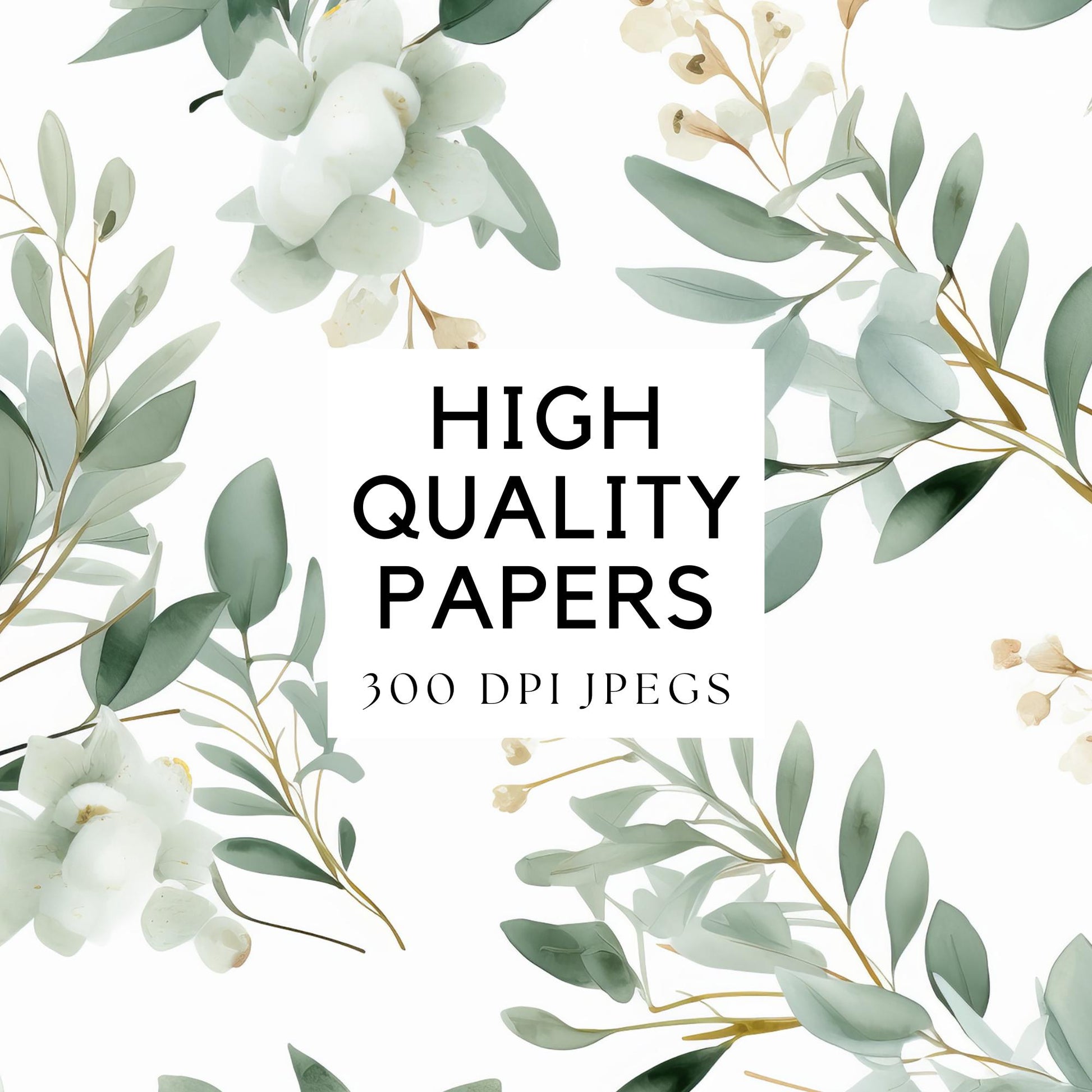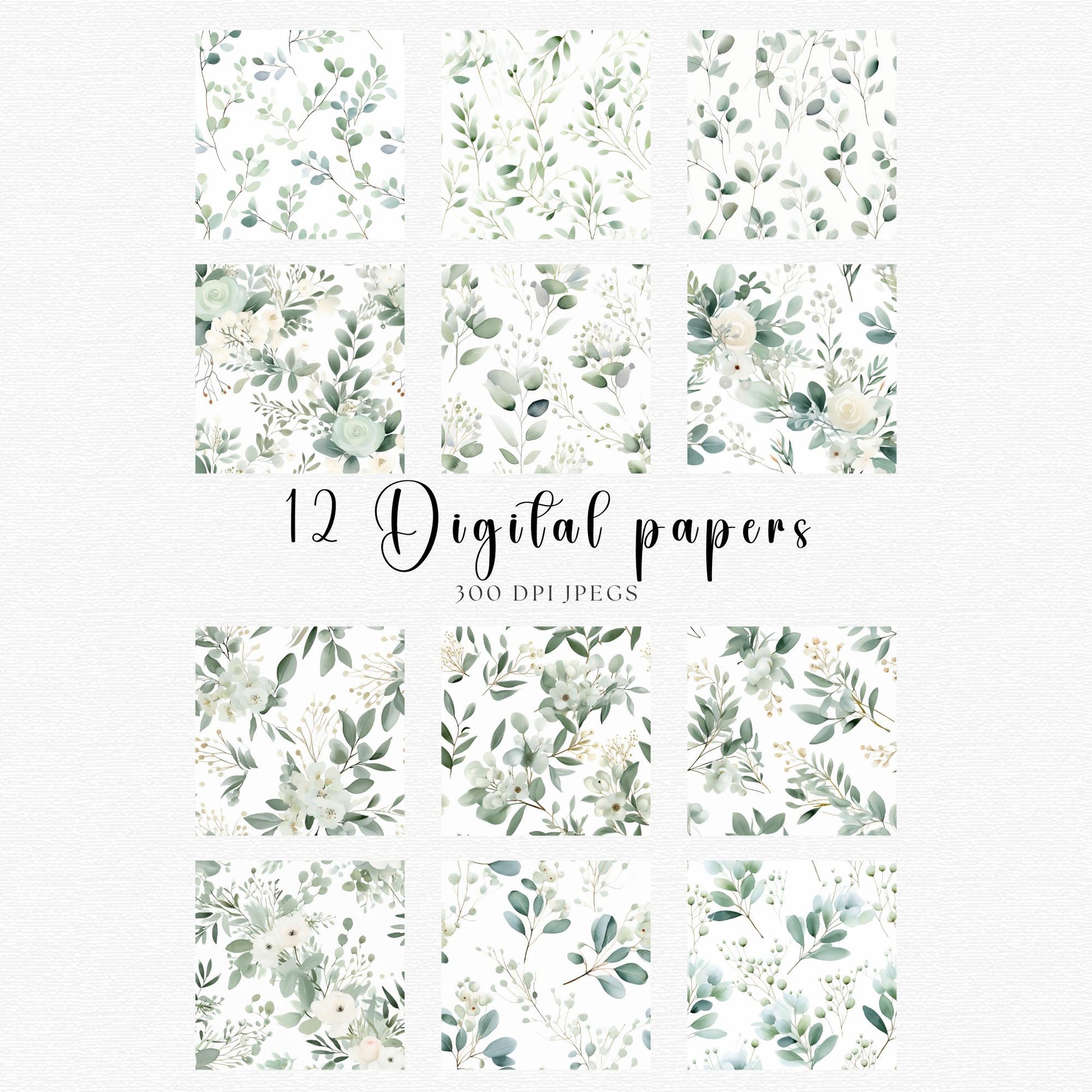 ¡Mejora tus diseños con nuestro impresionante paquete de Papeles Digitales de Hojas de Eucalipto! Esta hermosa colección incluye elementos de acuarela de alta calidad, perfectos para añadir un toque de elegancia natural a tus proyectos.