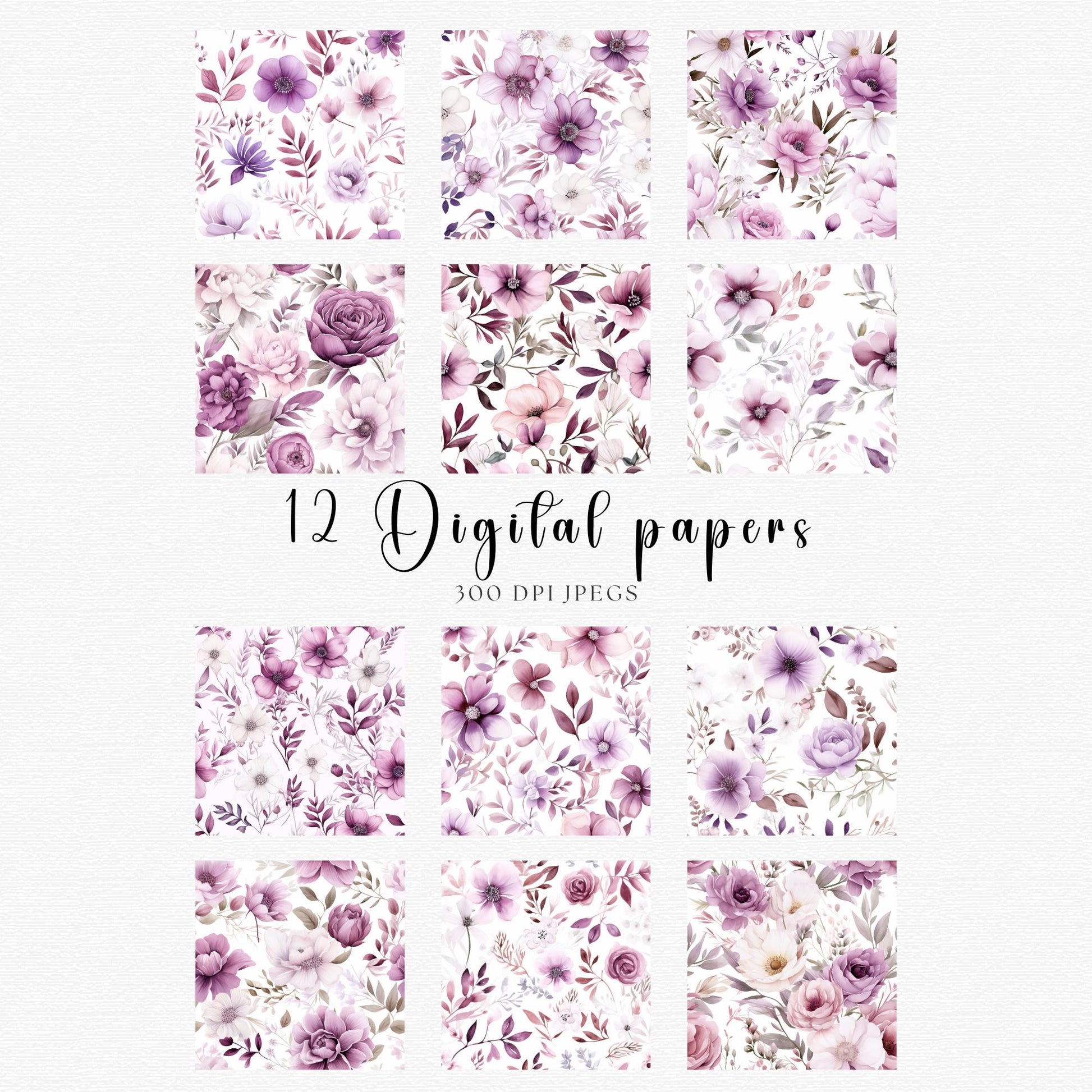 Transforma tus proyectos creativos con nuestro impresionante paquete de Papeles Digitales Florales Malva. Esta colección presenta hermosas flores de acuarela que capturan a la perfección la elegancia de los fondos florales morados. Ideal para invitaciones de boda y papelería.