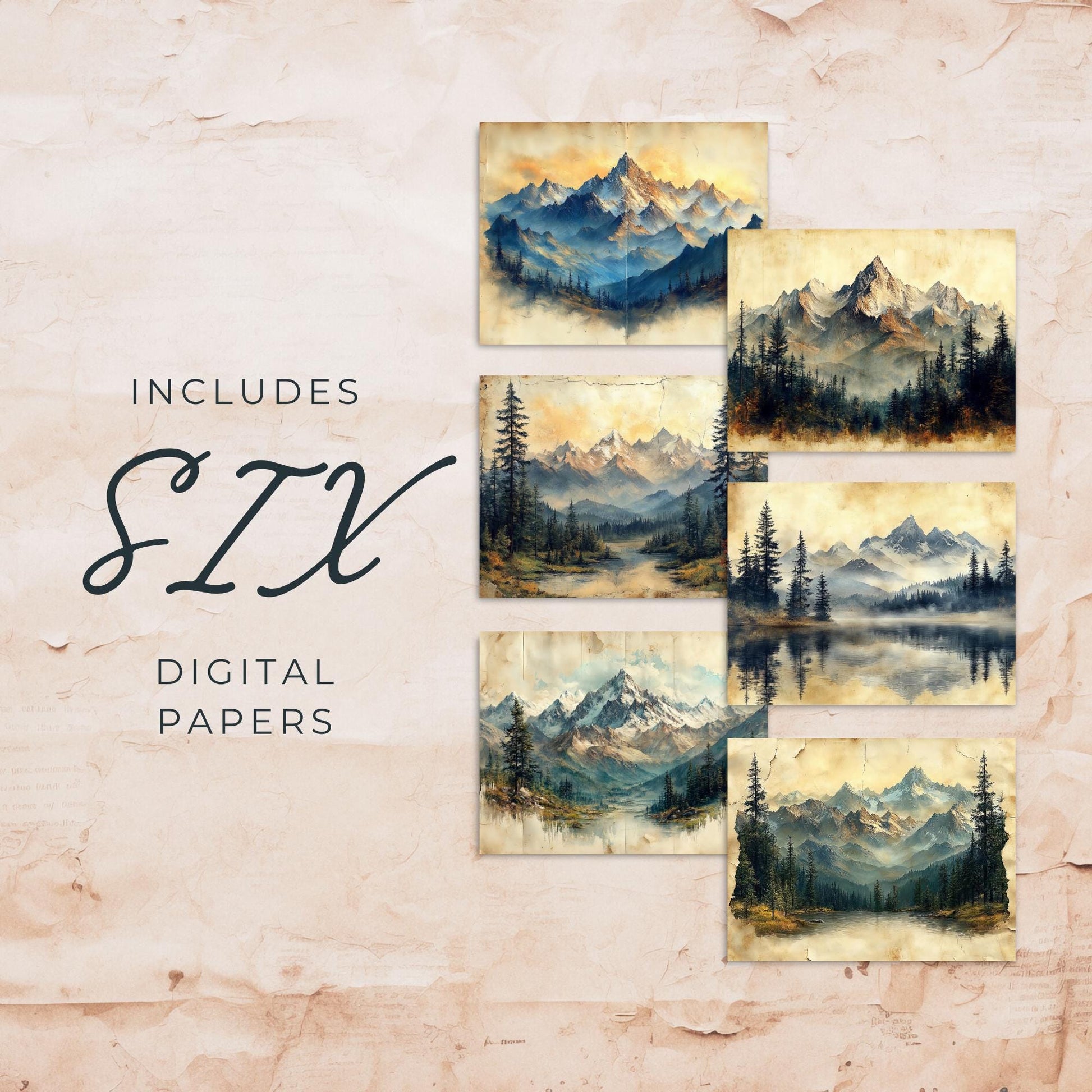 Captura la serena belleza de las montañas con este kit de páginas imprimibles para scrapbooking de diarios basura de montañas en acuarela. Perfecto para amantes de la aventura y la naturaleza, este kit incluye impresionantes paisajes en acuarela, ideales para crear un diario basura único con temática de senderismo o bosque. Ya sea que estés creando un diario personal de senderismo o un scrapbooking de aventuras en el bosque, estas páginas digitales aportan un toque de naturaleza a tus proyectos. Fáciles de descargar e imprimir, estas páginas ofrecen una creatividad ilimitada para tus proyectos de diario.