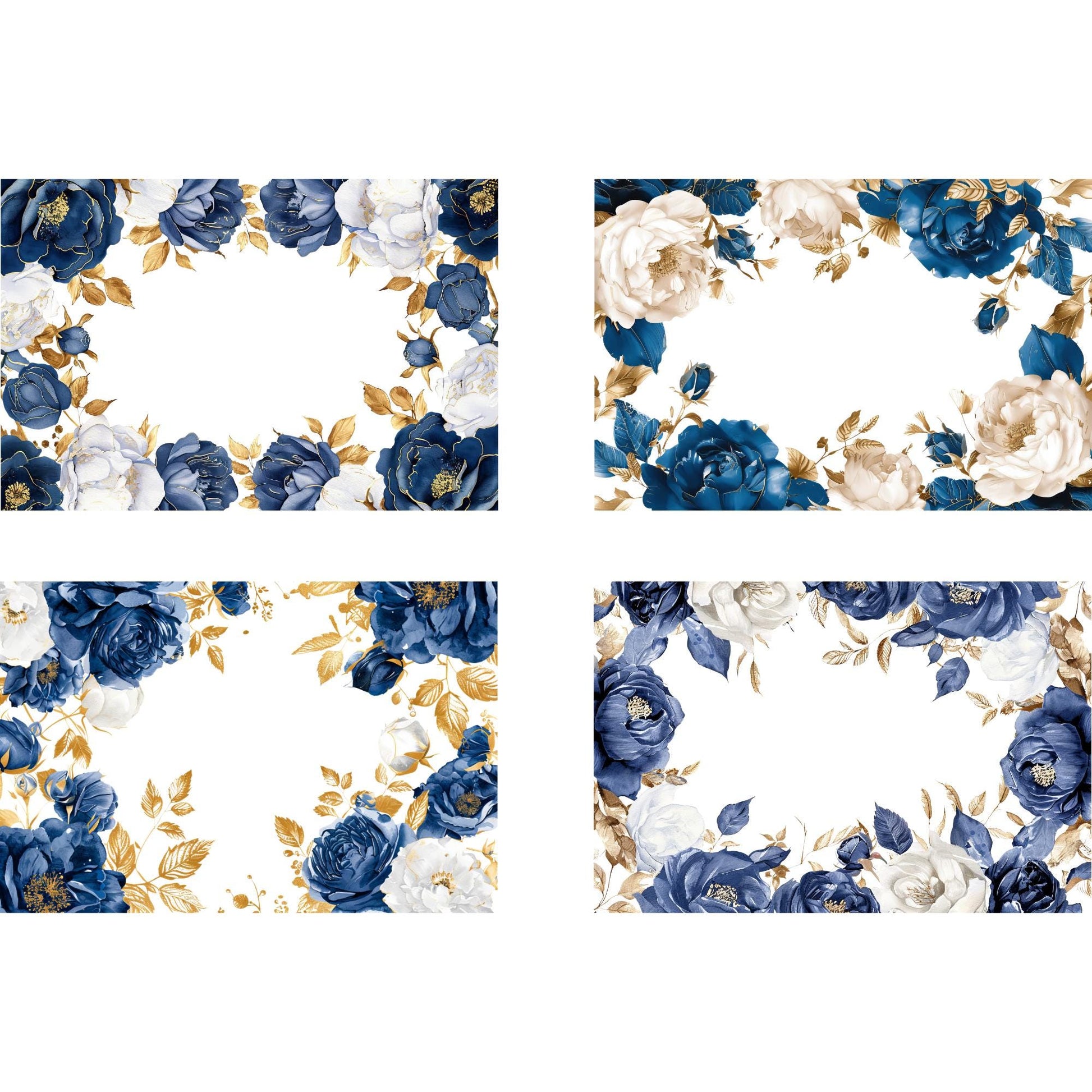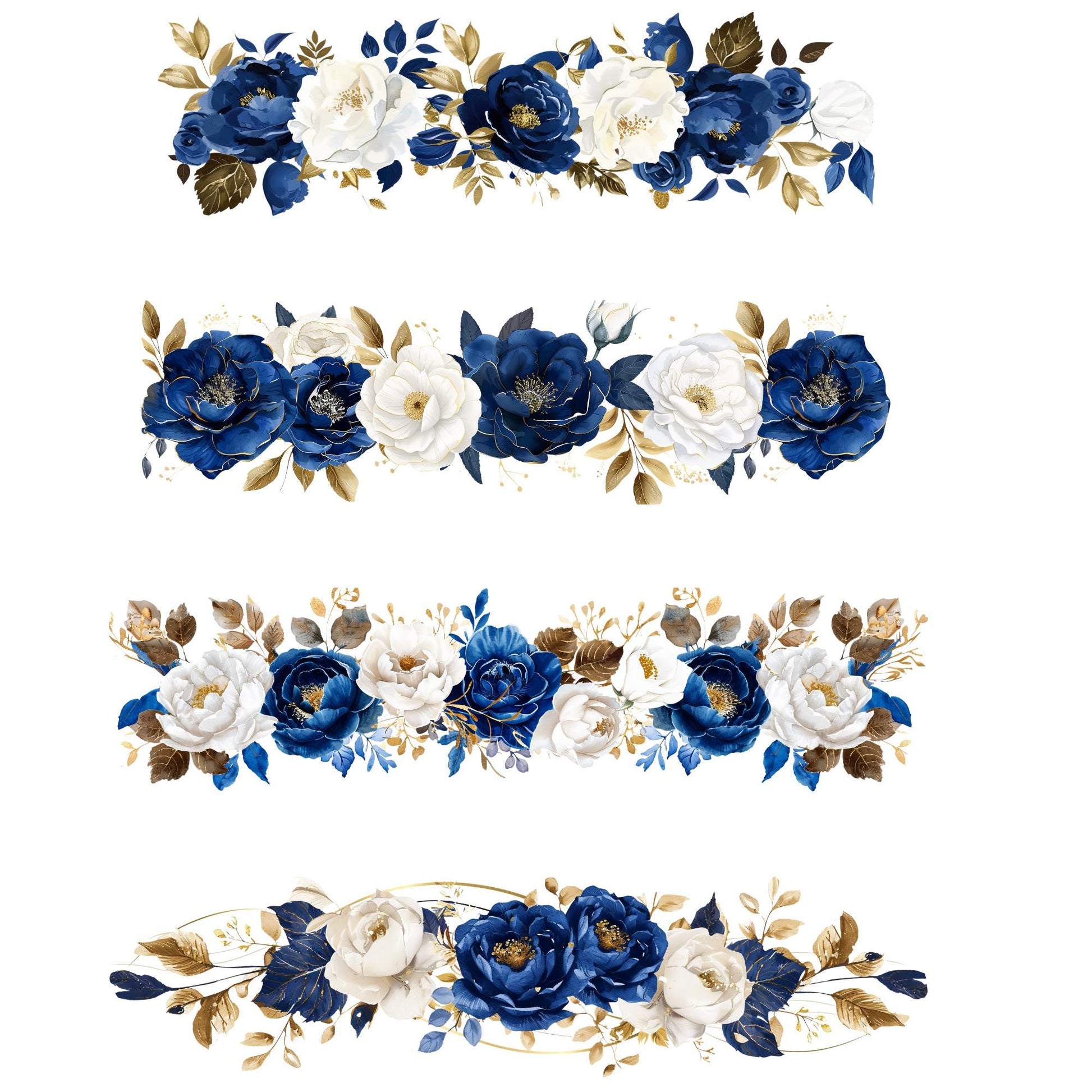 Transforma tus proyectos creativos con nuestro exquisito paquete de imágenes prediseñadas de marcos florales azul rey. Esta descarga digital presenta impresionantes flores de acuarela, incluyendo rosas azul rey y ramos de inspiración vintage. Perfectos para invitaciones de boda, tarjetas de felicitación, scrapbooking y más, estos archivos PNG de alta calidad vienen con fondos transparentes para integrarlos fácilmente en tus diseños.