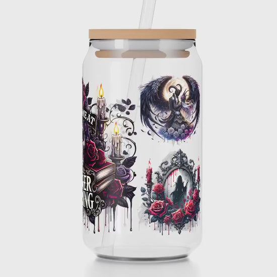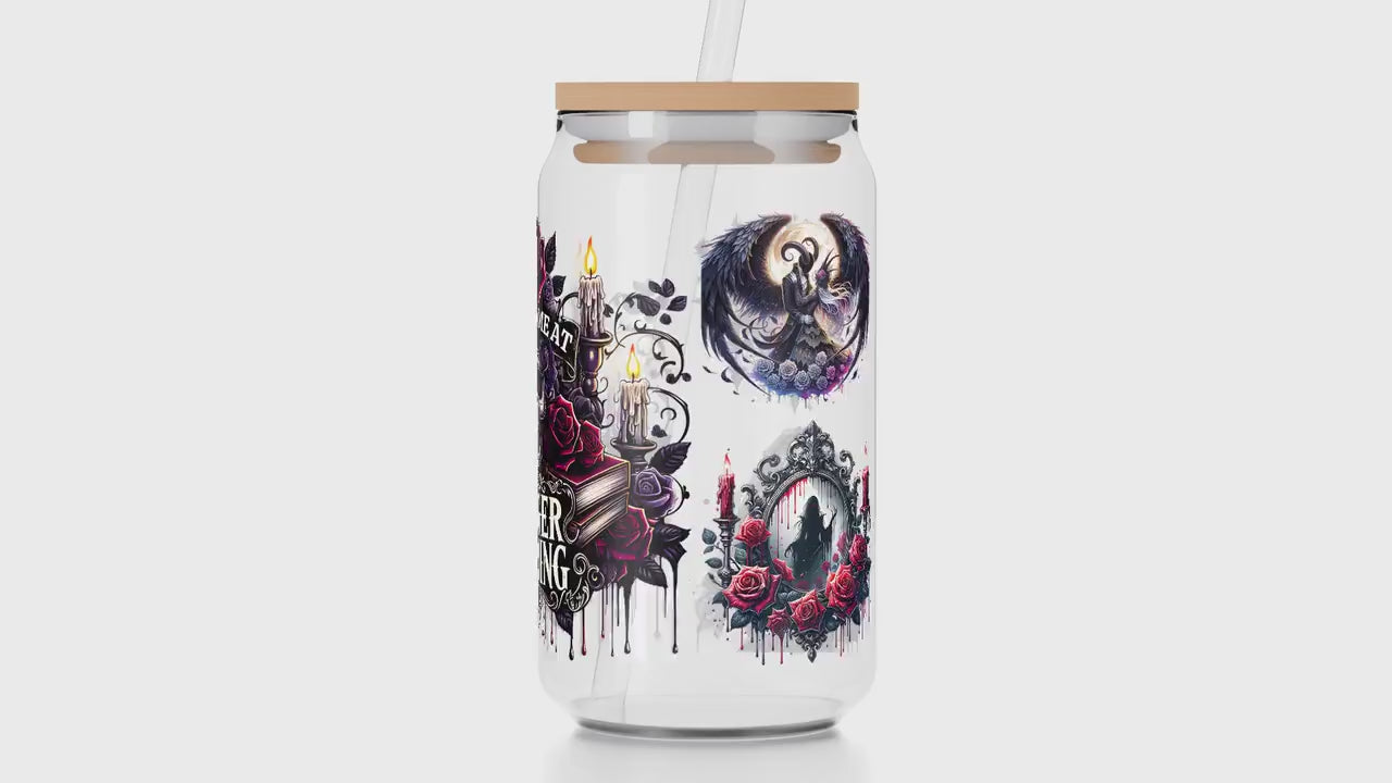 Nuestros diseños tienen el tamaño adecuado para una lata de vidrio de 16 oz (9.5" x 4.75"). Archivo PNG incluido para sublimación UVDTF.