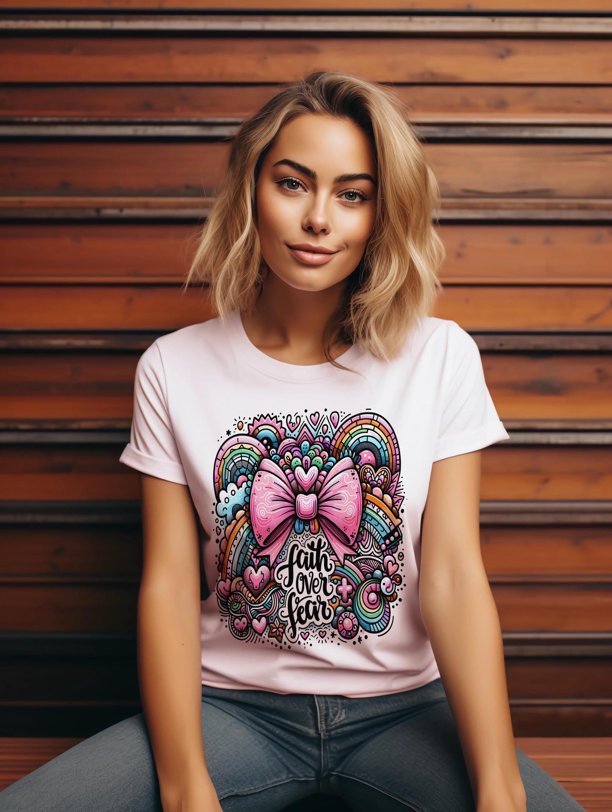 Lazo rosa png, coqueta png, fe sobre el miedo, cita positiva png, fe femenina png, motivación png, afirmación positiva, arcoíris png, cristiano png, biblia png, fe y esperanza png, inspiración png, diseño de sublimación