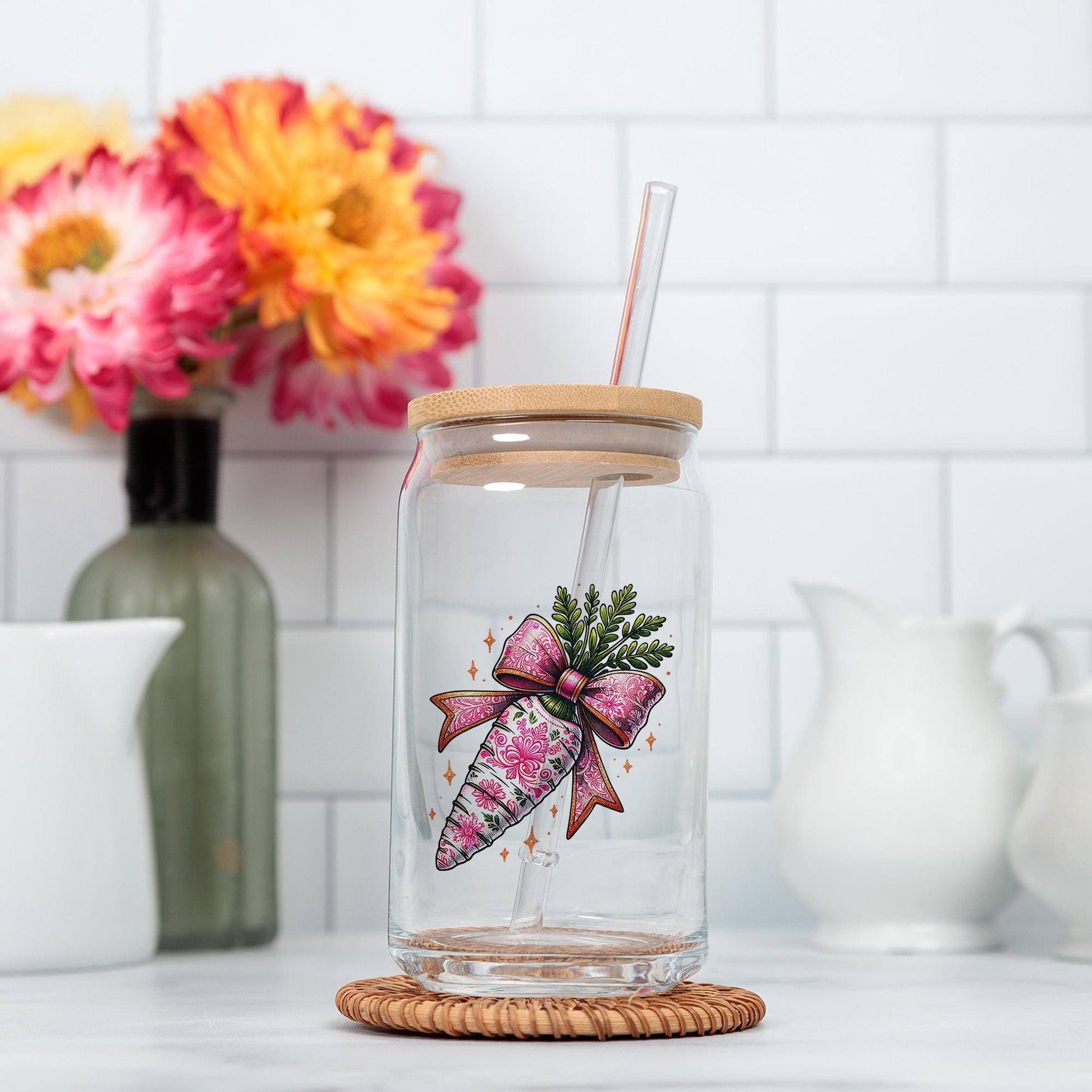 Dale un toque de elegancia y encanto a tus proyectos de Pascua con este PNG de zanahoria floral de Pascua. Con un diseño brillante y elegante con detalles florales y coquetos, este archivo listo para sublimación es perfecto para crear manualidades, regalos y mucho más de Pascua.