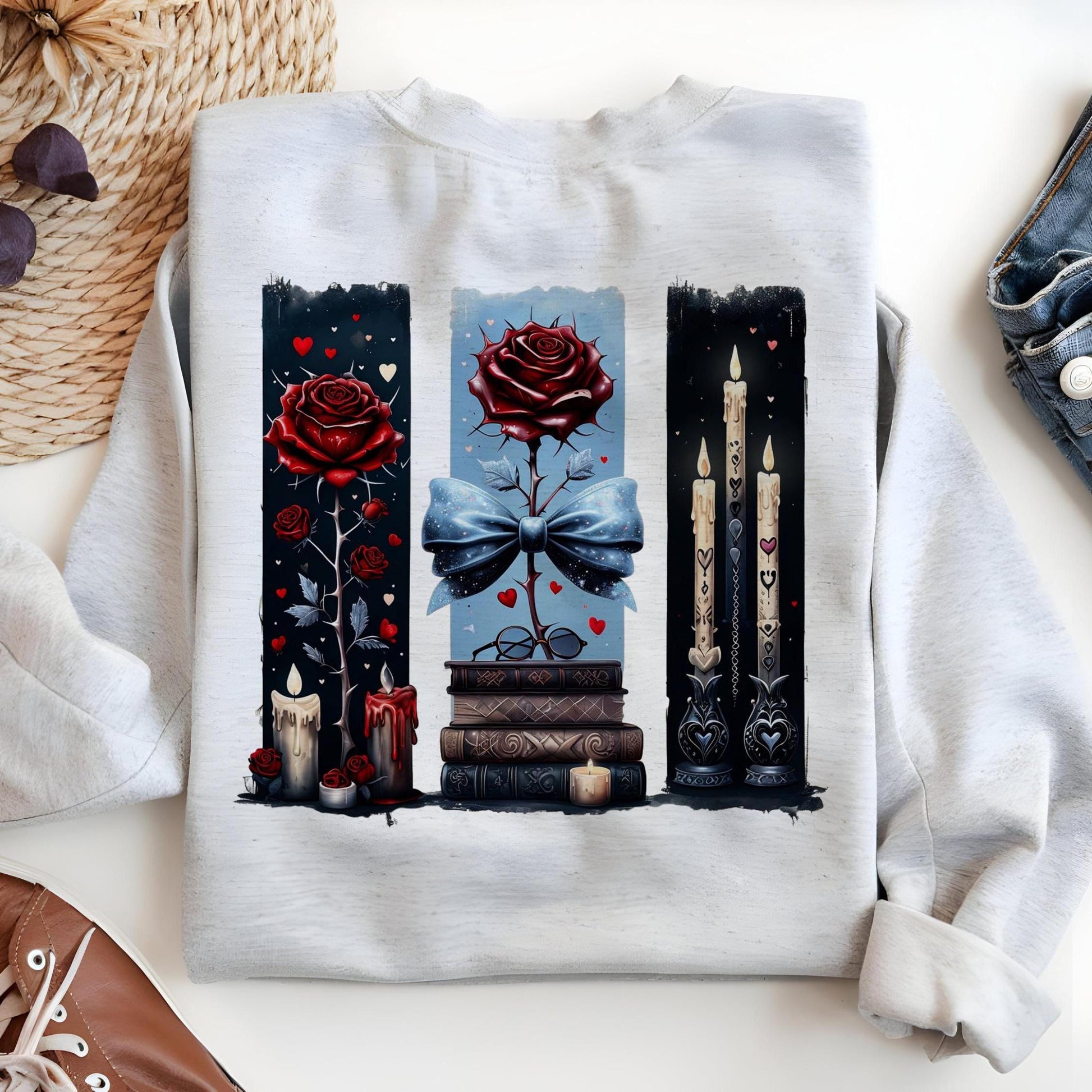 ¡Añade un toque de elegancia y misterio a tus diseños con este PNG de sublimación de rosa gótica! Perfecto para crear camisetas, bolsos y otros proyectos de sublimación a la moda, este diseño presenta una llamativa rosa roja con pinceladas de inspiración gótica. Ideal para amantes de la lectura, la fantasía oscura y cualquier persona que adore la estética gótica.