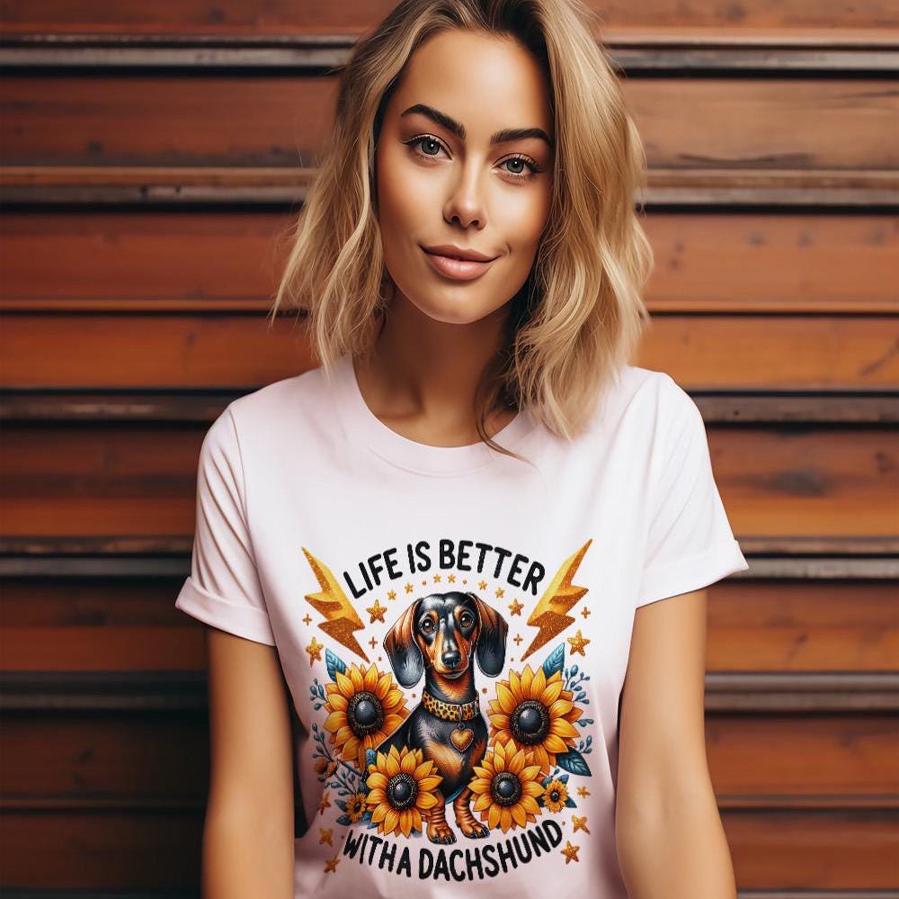 Celebra tu amor por los perros salchicha con este PNG "La vida es mejor con un perro salchicha". Perfecto para las amantes de los perros, este diseño de sublimación presenta una adorable y elegante ilustración de un perro salchicha, ideal para crear camisetas, tazas, bolsas de tela y más.