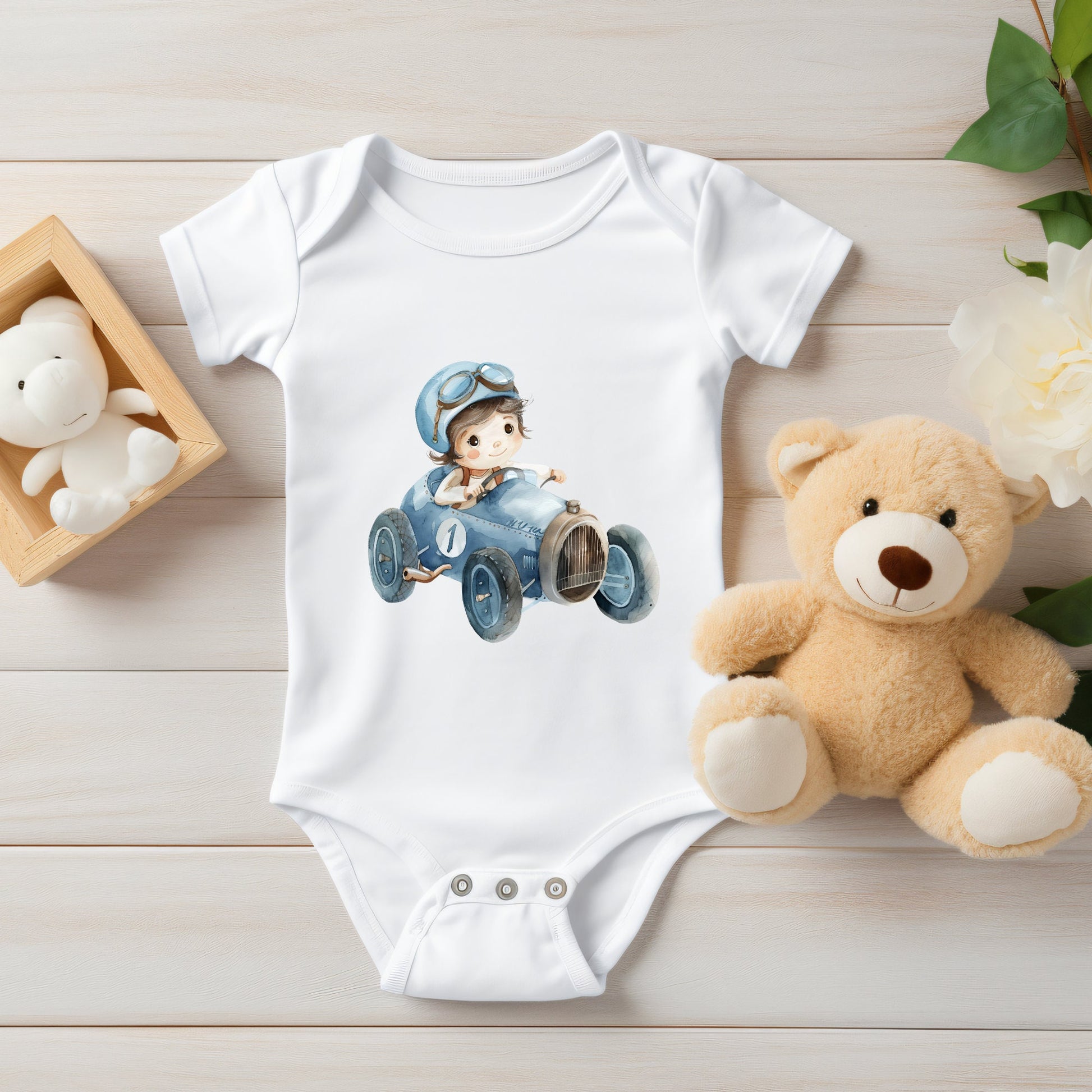 Celebra el próximo cumpleaños de tu pequeño corredor con nuestro encantador clipart de piloto de carreras. Esta colección presenta una encantadora combinación de autos de carreras vintage y acuarela, perfecta para crear invitaciones, decoraciones y mucho más.