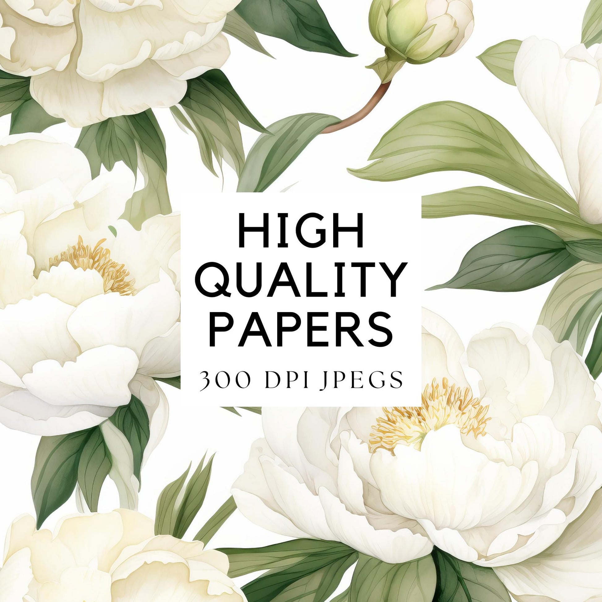 🌸 ¡Mejora tus proyectos de diseño con nuestro exquisito paquete de papel digital Peonía Blanca! 🌿 Esta impresionante colección presenta delicadas flores de peonía en acuarela y un exuberante follaje, perfecto para añadir un toque de elegancia a tus creaciones. Ideal para invitaciones de boda, este versátil set incluye archivos JPEG de Peonía Blanca de alta calidad.