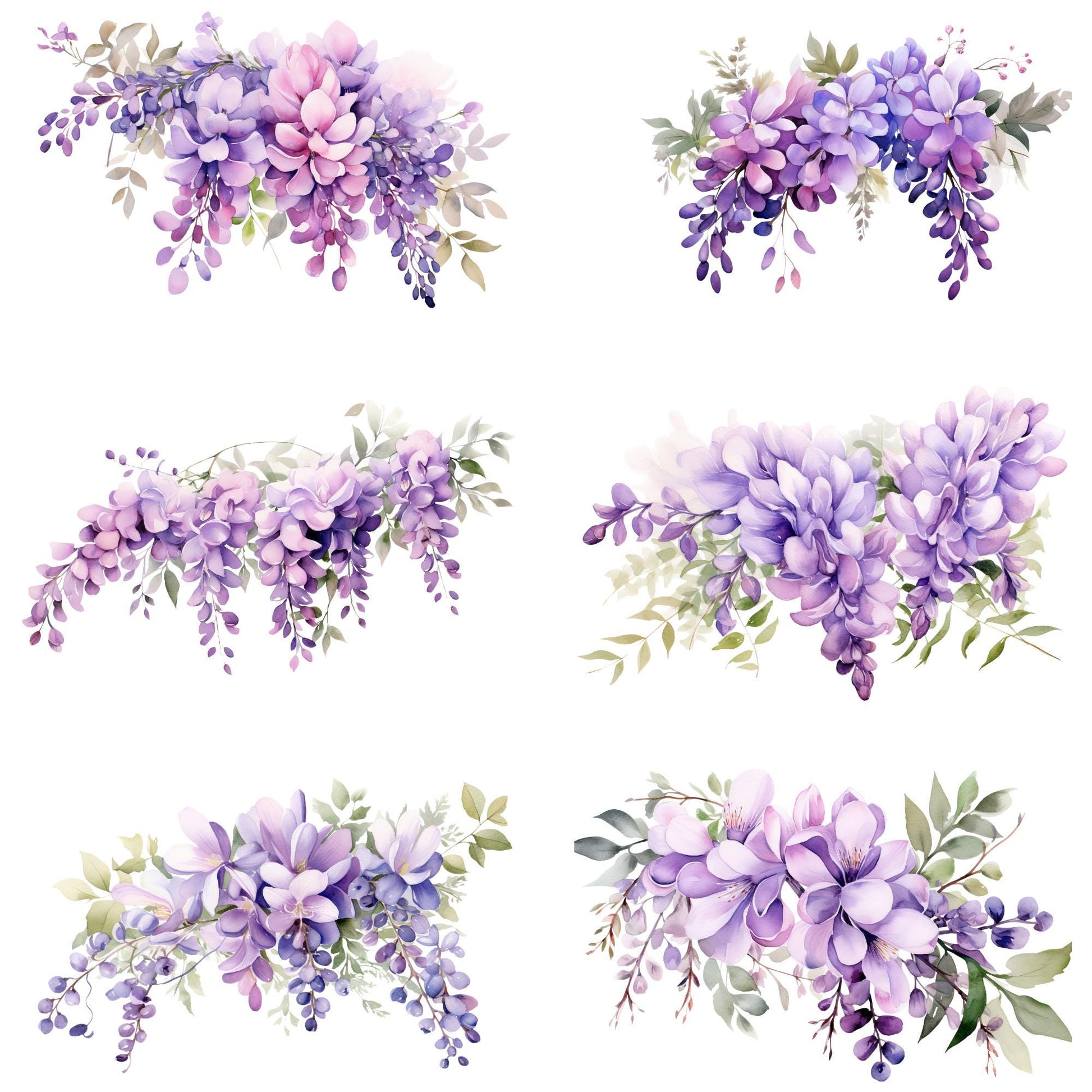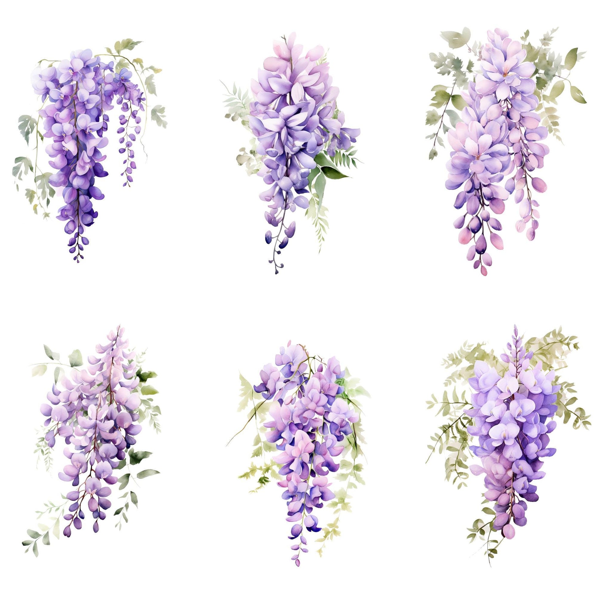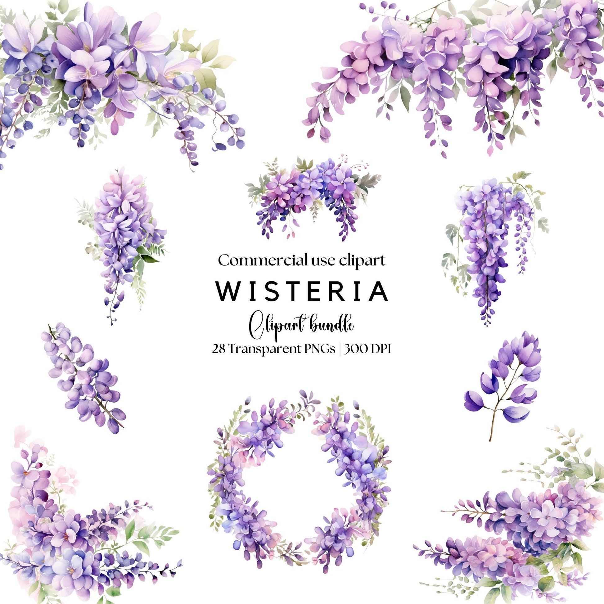 Realza tus diseños con nuestro exquisito clipart de glicina en acuarela, con vibrantes flores moradas, perfecto para invitaciones de boda y proyectos primaverales. Esta descarga digital incluye archivos PNG de alta calidad listos para usar. Ideal para profesionales creativos que buscan realzar sus diseños florales.
