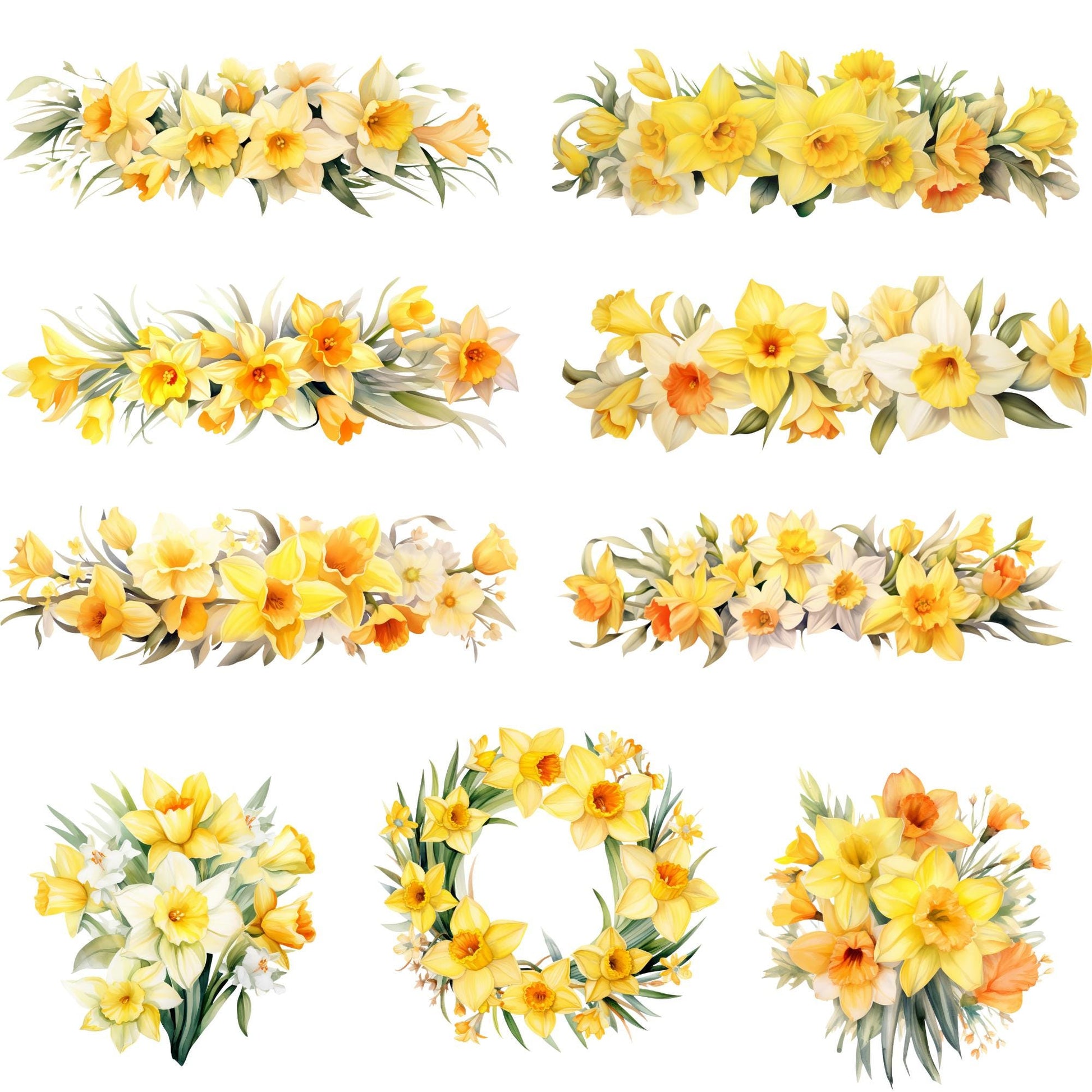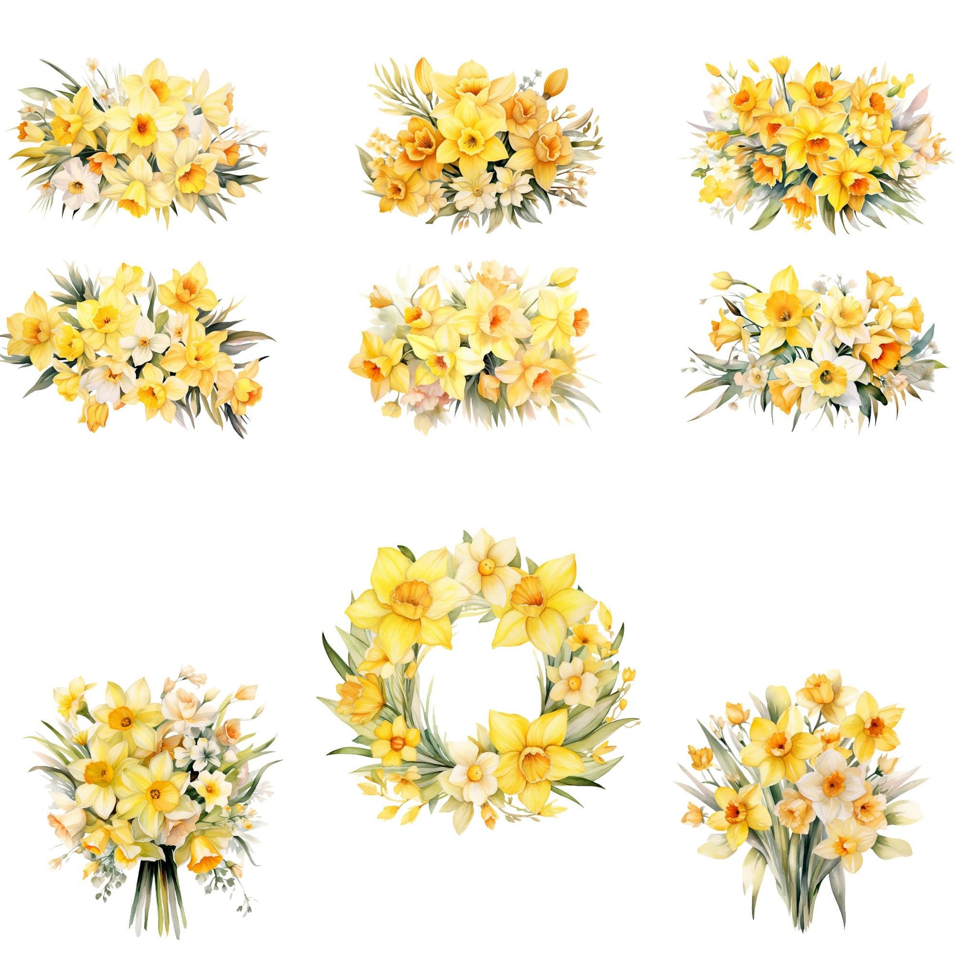 Ilumina tus proyectos con nuestro clipart de Narciso Amarillo, con vibrantes narcisos en acuarela, perfectos para diseños primaverales. Esta descarga digital ofrece hermosos elementos florales para un uso creativo versátil. ¡Ideal para añadir un toque primaveral a cualquier proyecto!