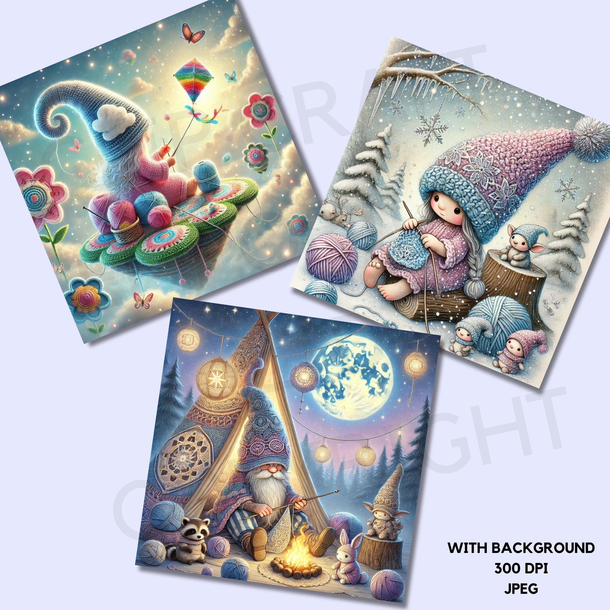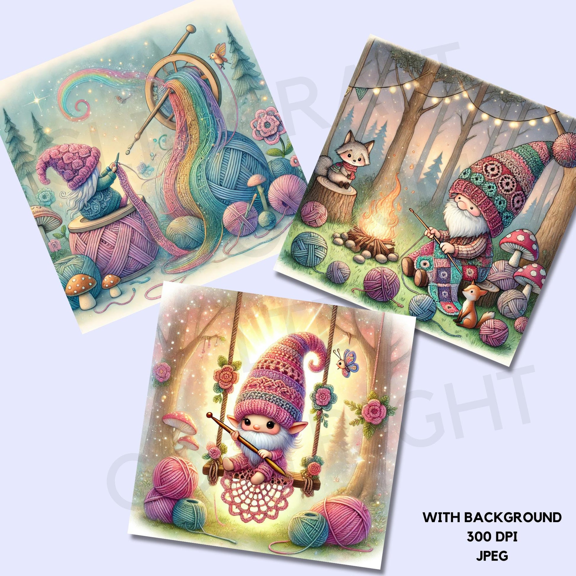 Bring charm to your crafts with our Crochet Gnome JPEGs, featuring adorable watercolor gnomes perfect for knitting and crochet themes. This digital download offers vibrant sublimation designs ideal for creative projects. Perfect for crafters and yarn enthusiasts!