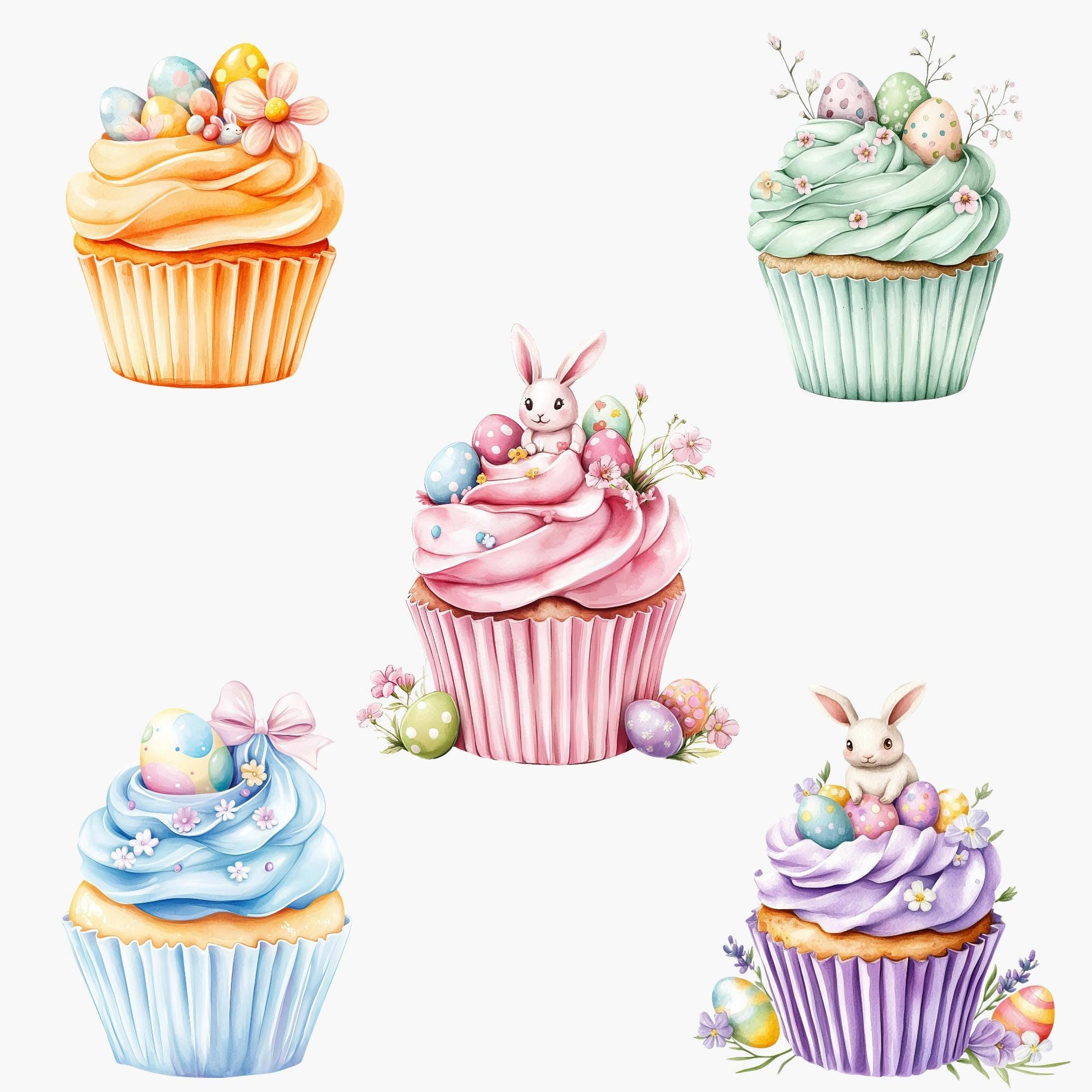 Watercolor Cupcakes, Easter Cupcake Png, Digital Download, Watercolor Clipart, Bakery Clipart, Easter Eggs Clipart, Sweets Cliparts, Spring Clipart, Baking Clipart, Cupcake Illustration, Easter Food Clipart, Instant Download, Watercolor Easter