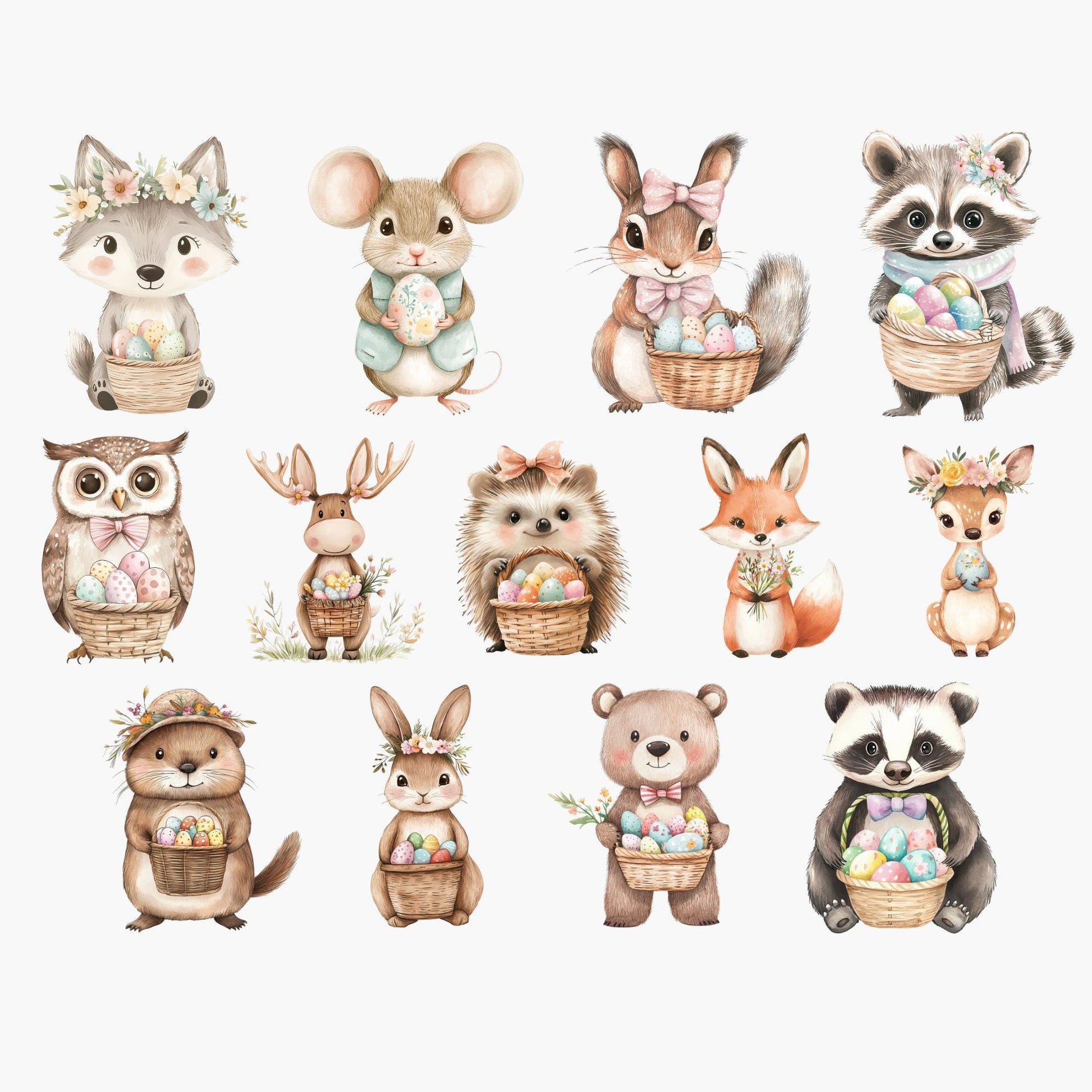Hop into the enchanting world of Easter with our Easter Woodland Animals Clipart collection! This delightful set of 24 PNG images features adorable watercolor illustrations perfect for adding a whimsical touch to your creative projects.