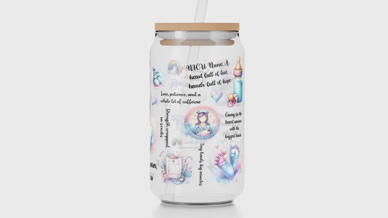Celebrate the dedication of NICU nurses with this NICU Nurse Glass Can Wrap! Designed for 16oz Libbey glass cans, this sublimation wrap features nurse-themed elements, perfect for creating personalized and meaningful drinkware. Ideal for NICU nurses, nursing students, and healthcare heroes.
