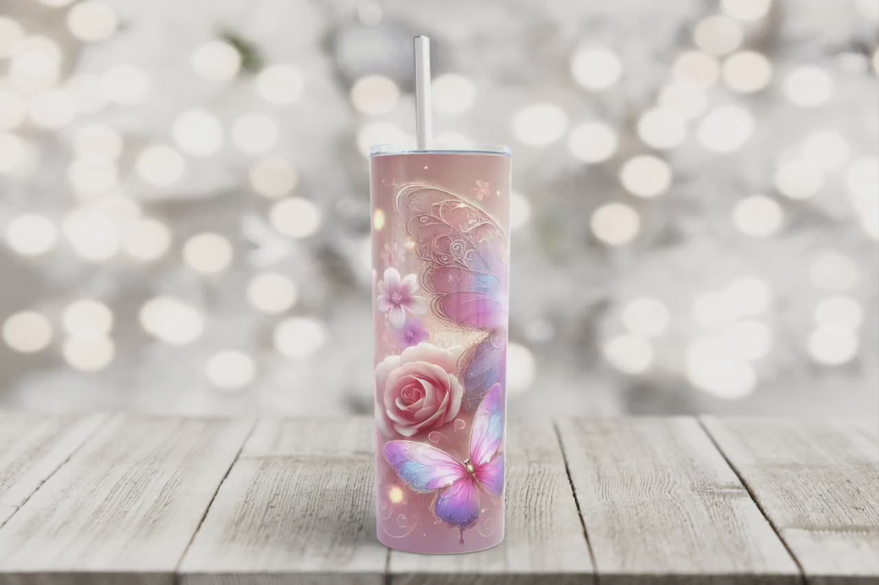 Add a touch of elegance with this Pink and Purple 3D Butterfly Tumbler Wrap! Featuring stunning 3D butterflies in soft pink and purple hues, this sublimation tumbler design brings a magical, delicate look to your 20 oz skinny tumbler. Perfect for butterfly lovers and those who adore glitter tumbler wraps, this digital download ensures high-quality printing and a seamless fit. Instantly elevate your tumbler with this dreamy, floral-inspired wrap!