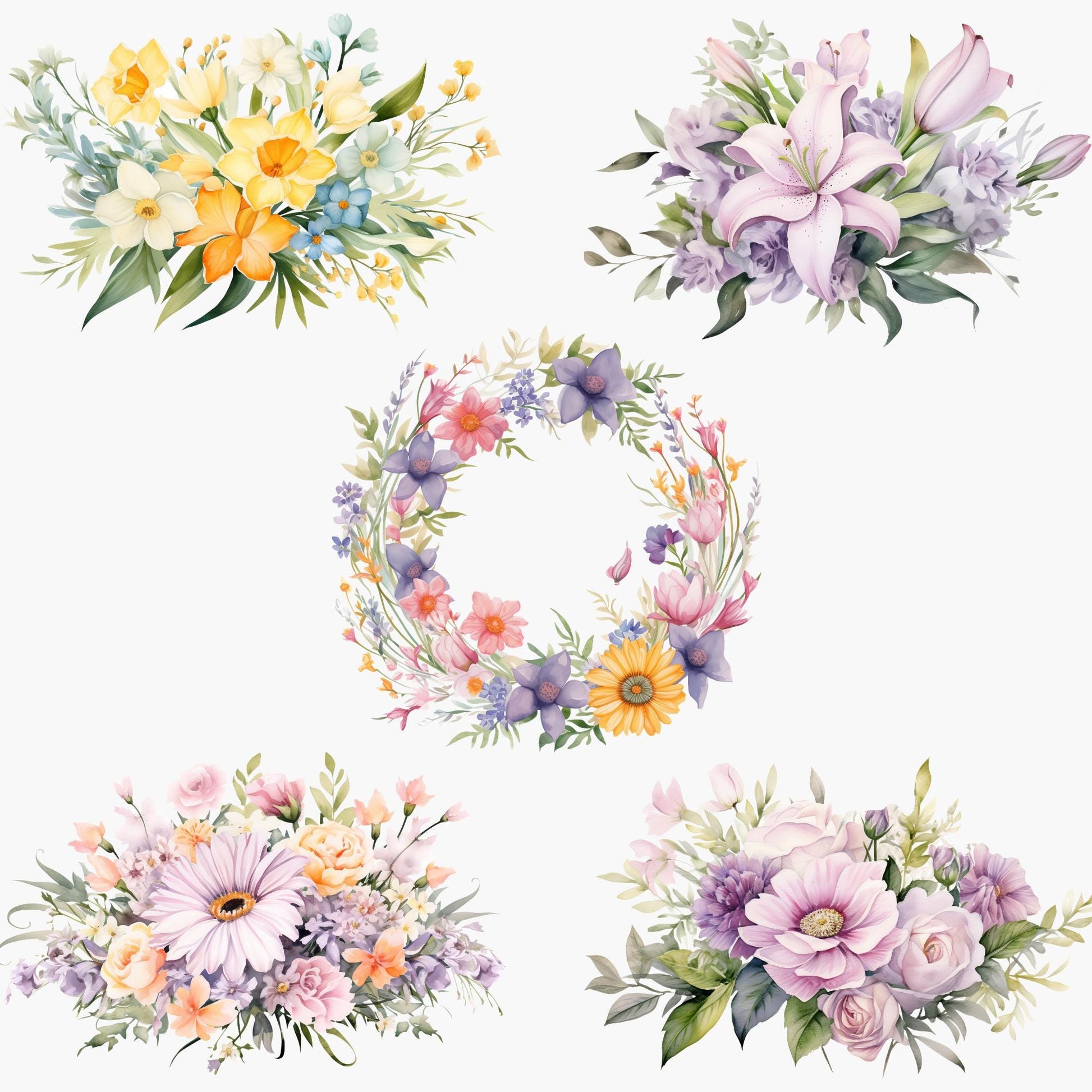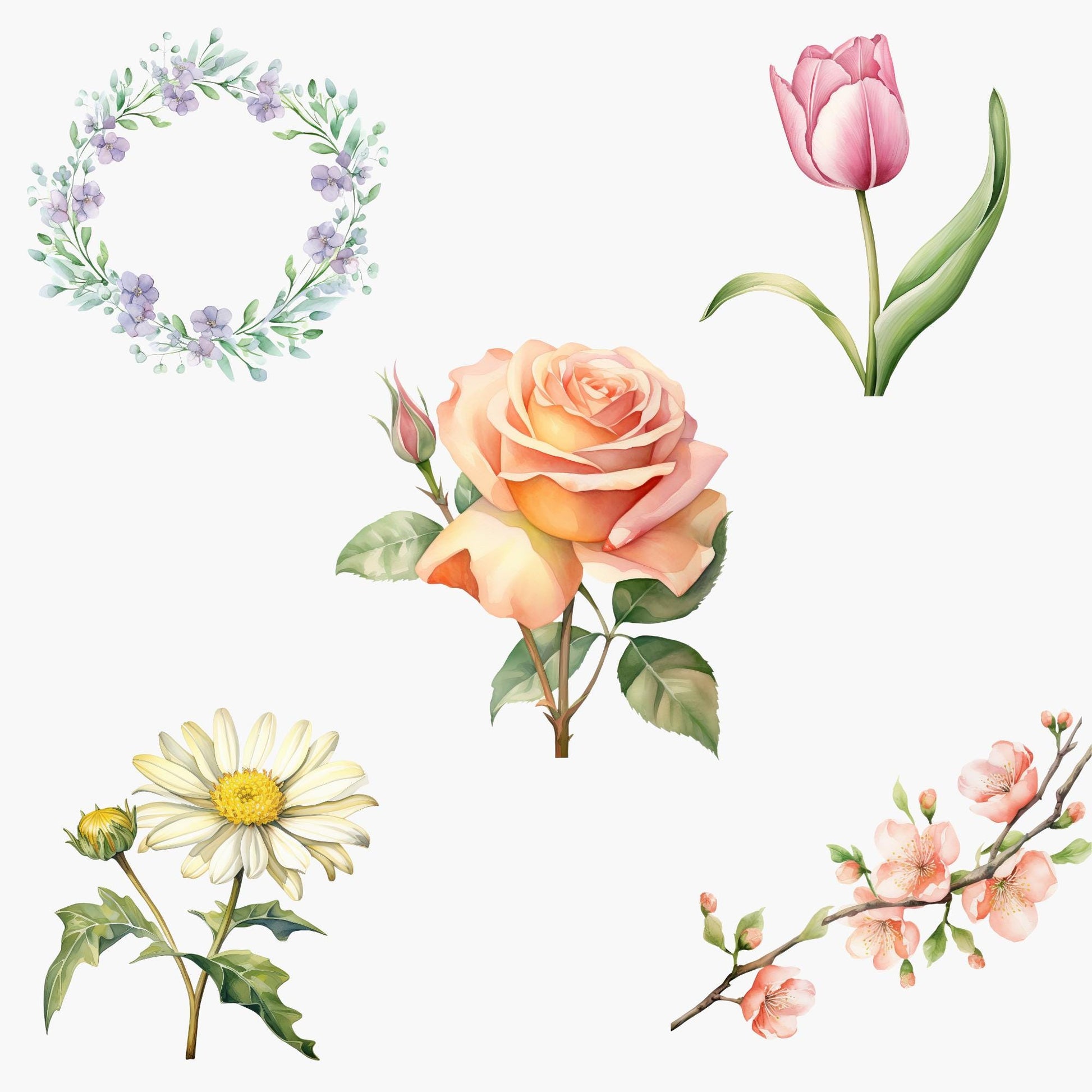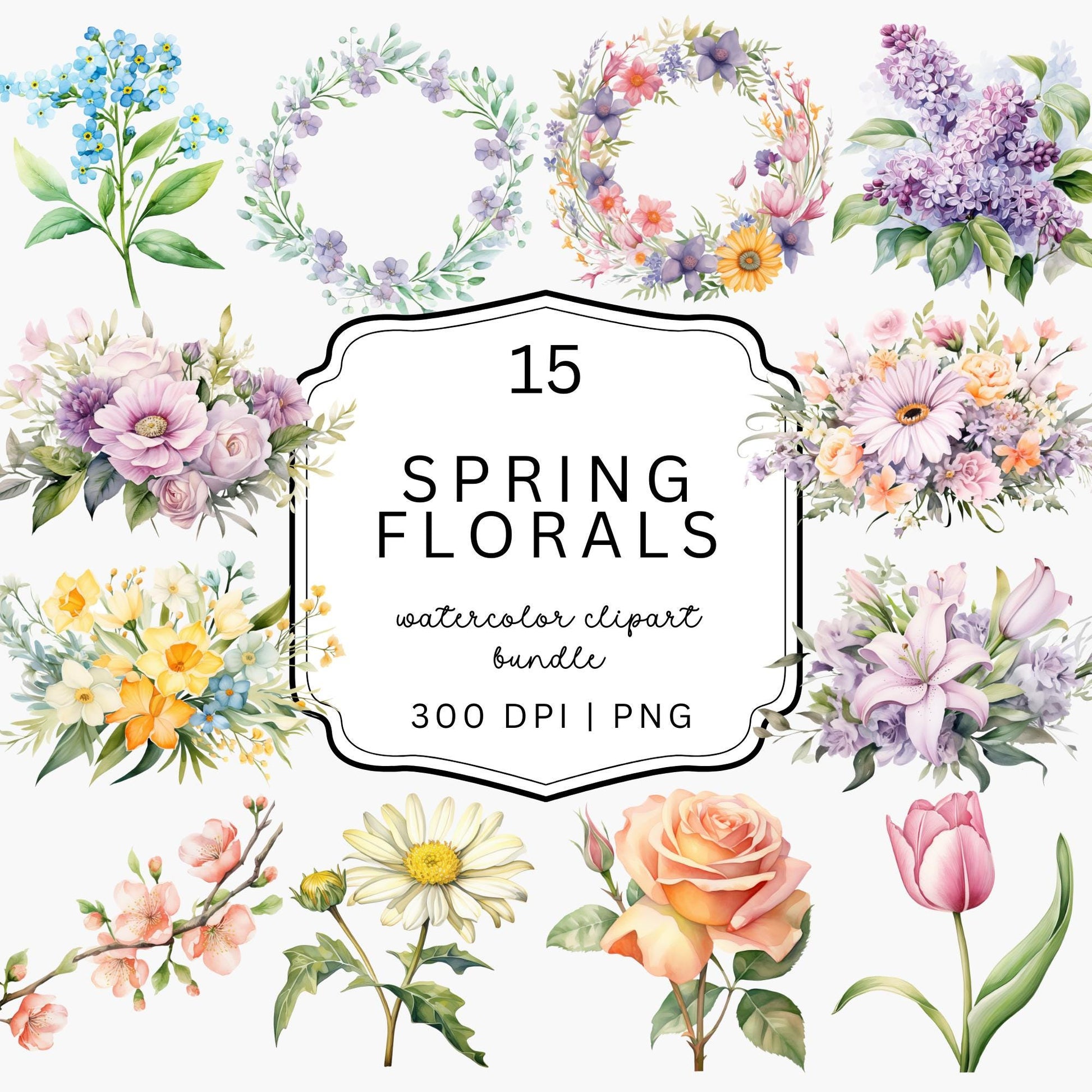 Embrace the beauty of spring with our delightful Spring Floral Clipart collection! Perfect for adding a touch of elegance to your projects, this collection features 15 beautifully crafted watercolor images.