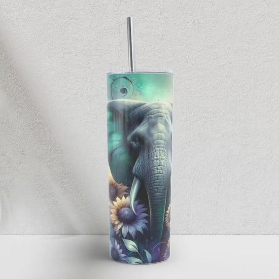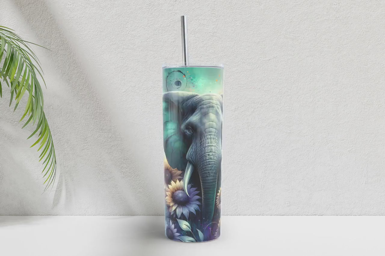 Teal and purple elephant with sunflowers 20oz tumbler wrap