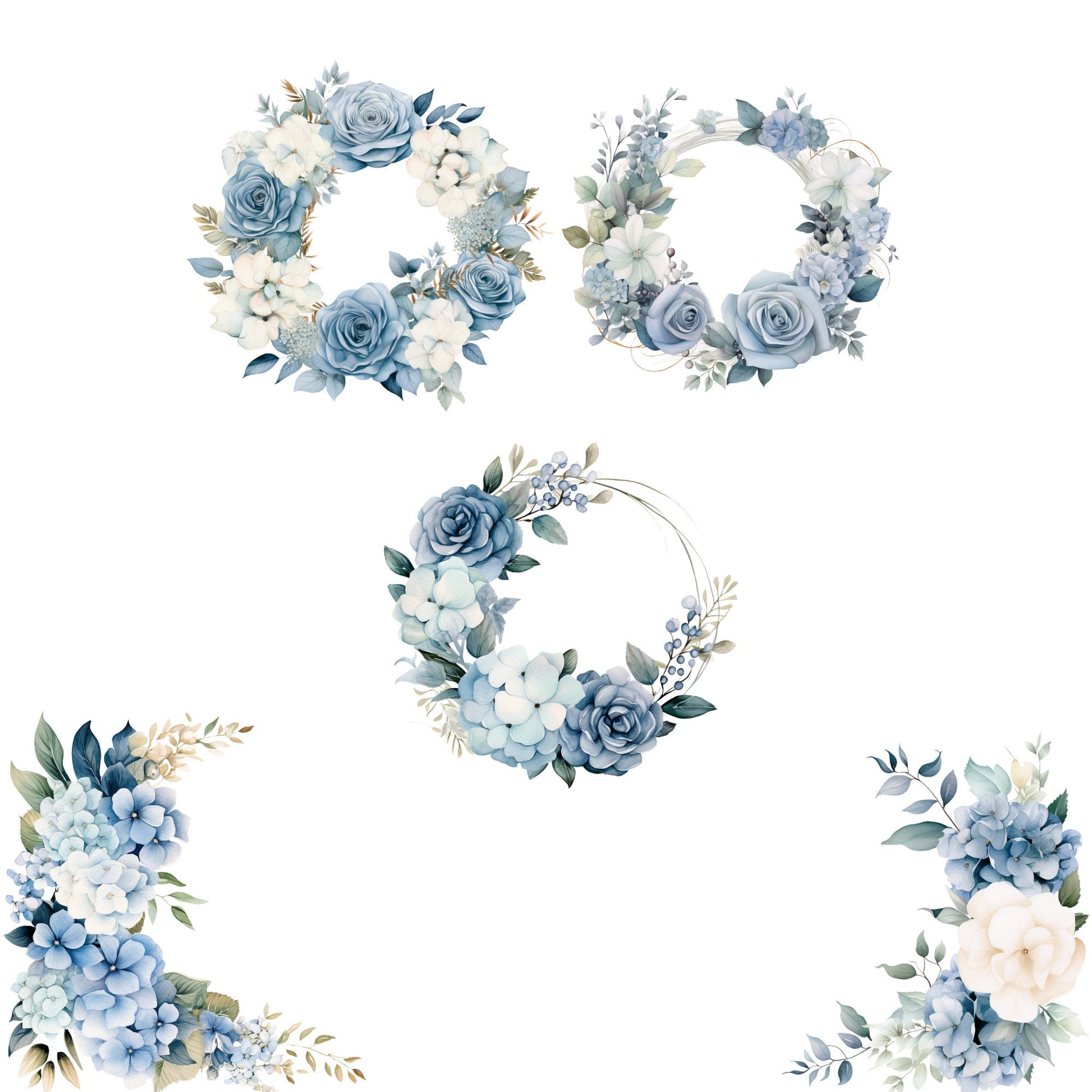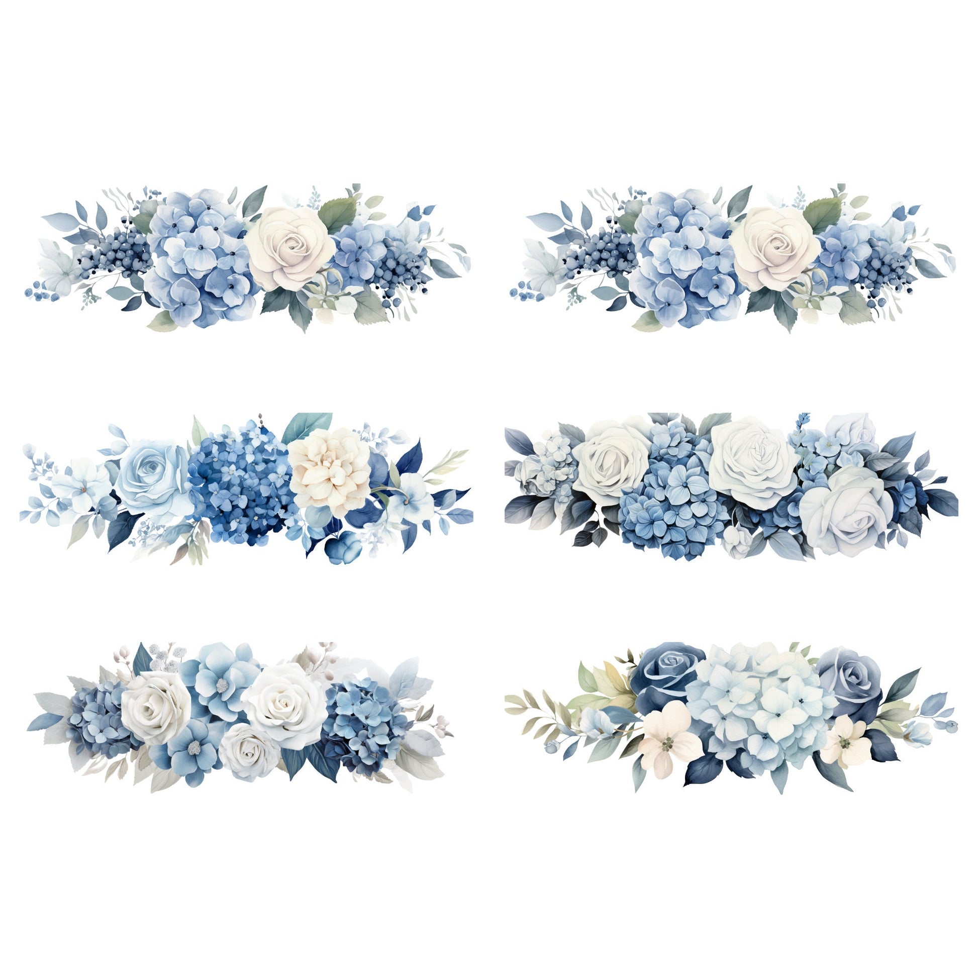 🌸 Add a touch of serene elegance to your designs with our Watercolor Dusty Blue Hydrangea and Rose Floral Clipart pack! 🎨 This exquisite collection features hydrangeas and roses in calming shades of dusty blue, perfect for wedding invitations, greeting cards, and more. Each element is carefully crafted to bring a timeless charm to your projects. Use these Watercolor Clipart beauties to infuse your designs with the soft allure of nature's palette. 💐