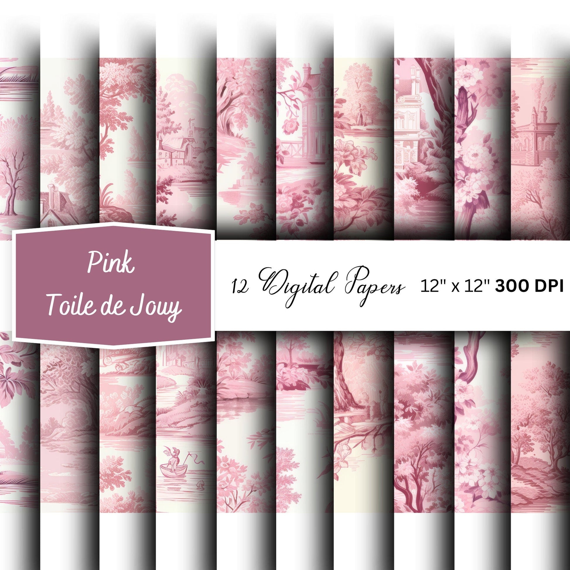 Transform your projects with our Watercolor Toile de Jouy Digital Papers! Dive into the elegance of seamless patterns inspired by Chinoiserie and French aesthetics. This pack features stunning pink toile patterns perfect for scrapbooking, junk journals, and more.
