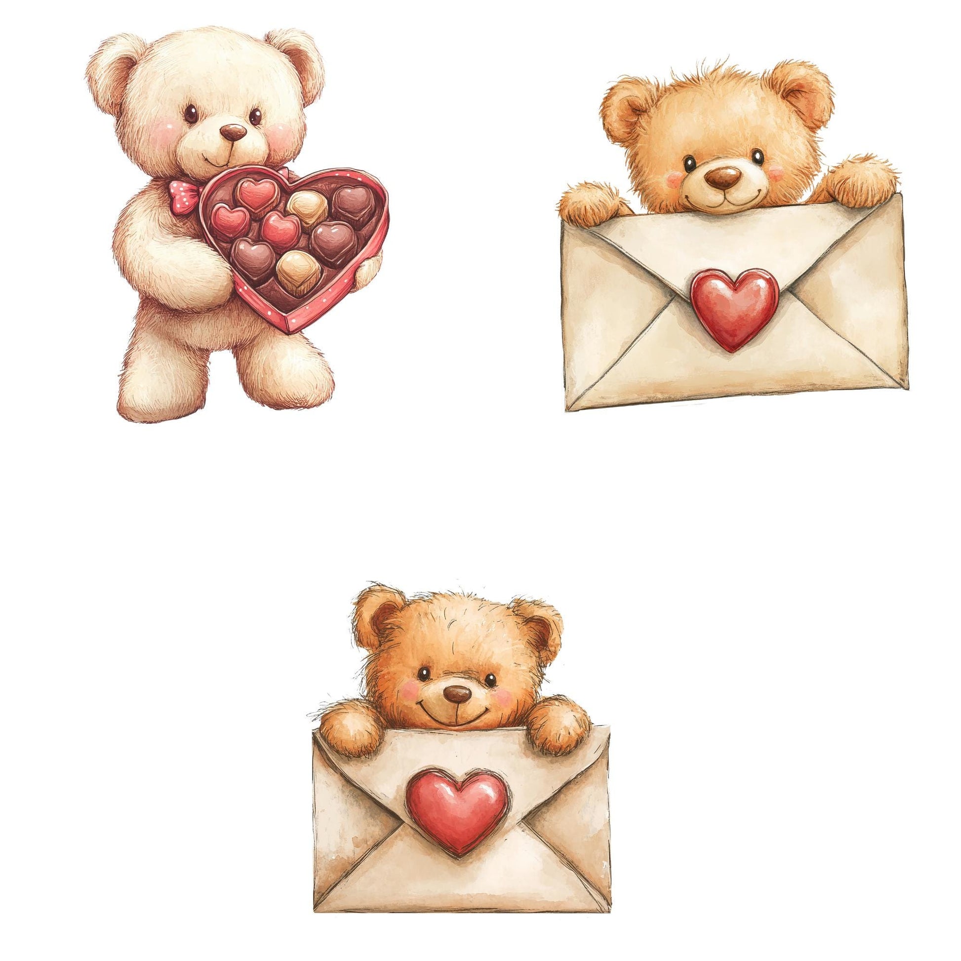 Whether you're designing Valentine’s Day cards, crafting romantic artwork, or creating cute digital downloads, this clipart pack offers a delightful collection of teddy bear designs. Each element is crafted with love to bring warmth and charm to your creations.