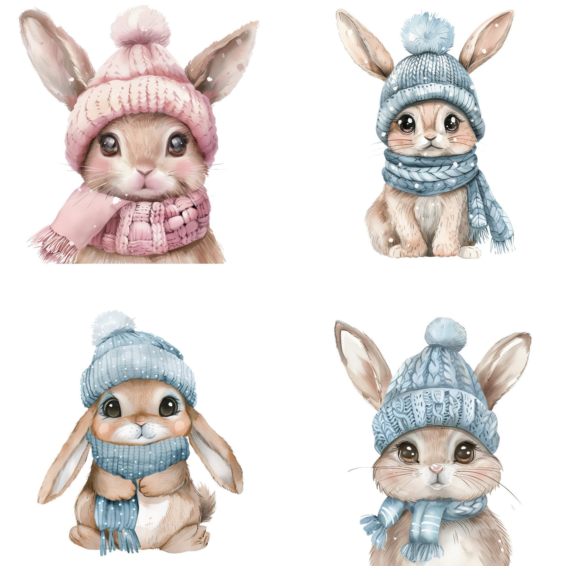 Welcome the charm of winter with our Watercolor Winter Bunny Clipart! This adorable collection features cute bunnies adorned in winter attire, perfect for adding a touch of whimsy to your holiday projects. Whether you're crafting holiday cards, decorating a nursery, or designing seasonal invitations, these watercolor bunnies are sure to bring joy and warmth.